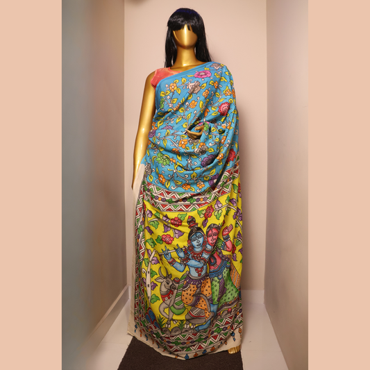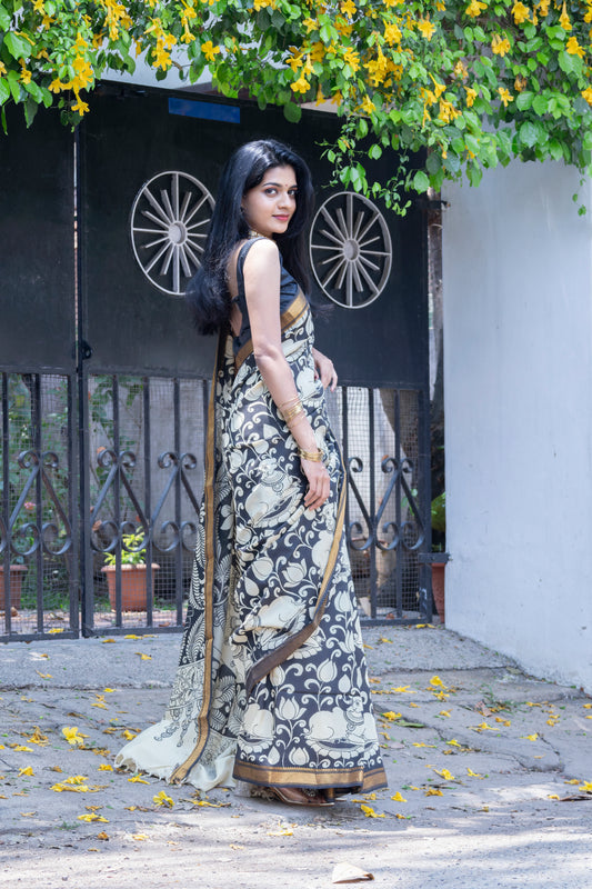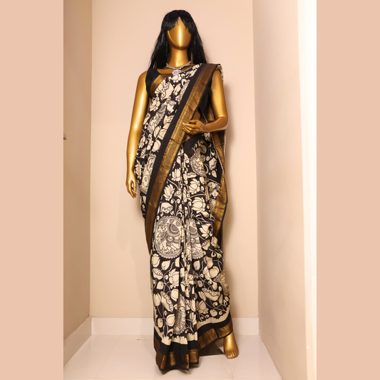 Hand Painted Pen Kalamkari Mangala Giri Silk Saree