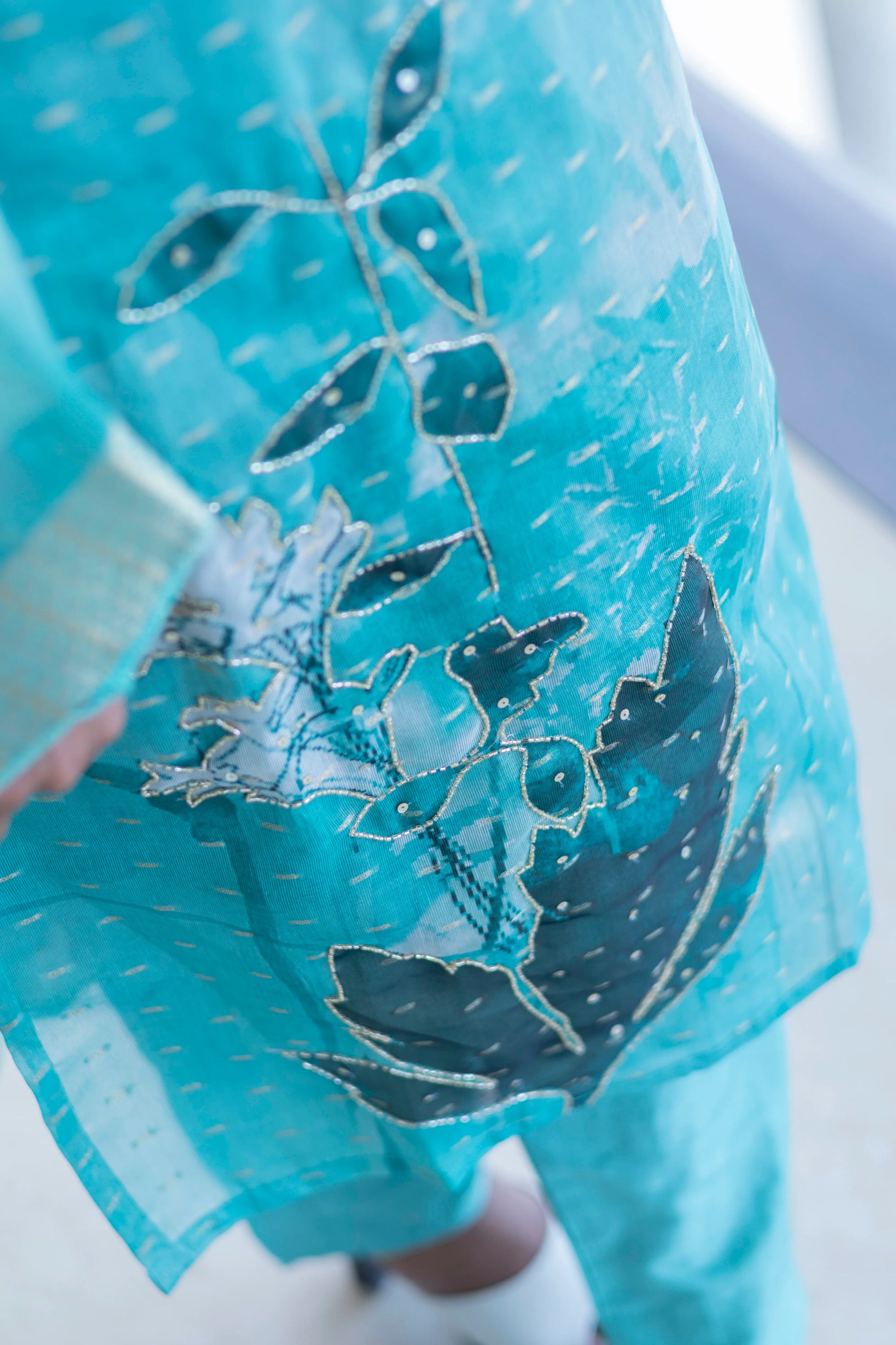 Always opt for professional dry cleaning to preserve the fabric's sheen and intricate designs.