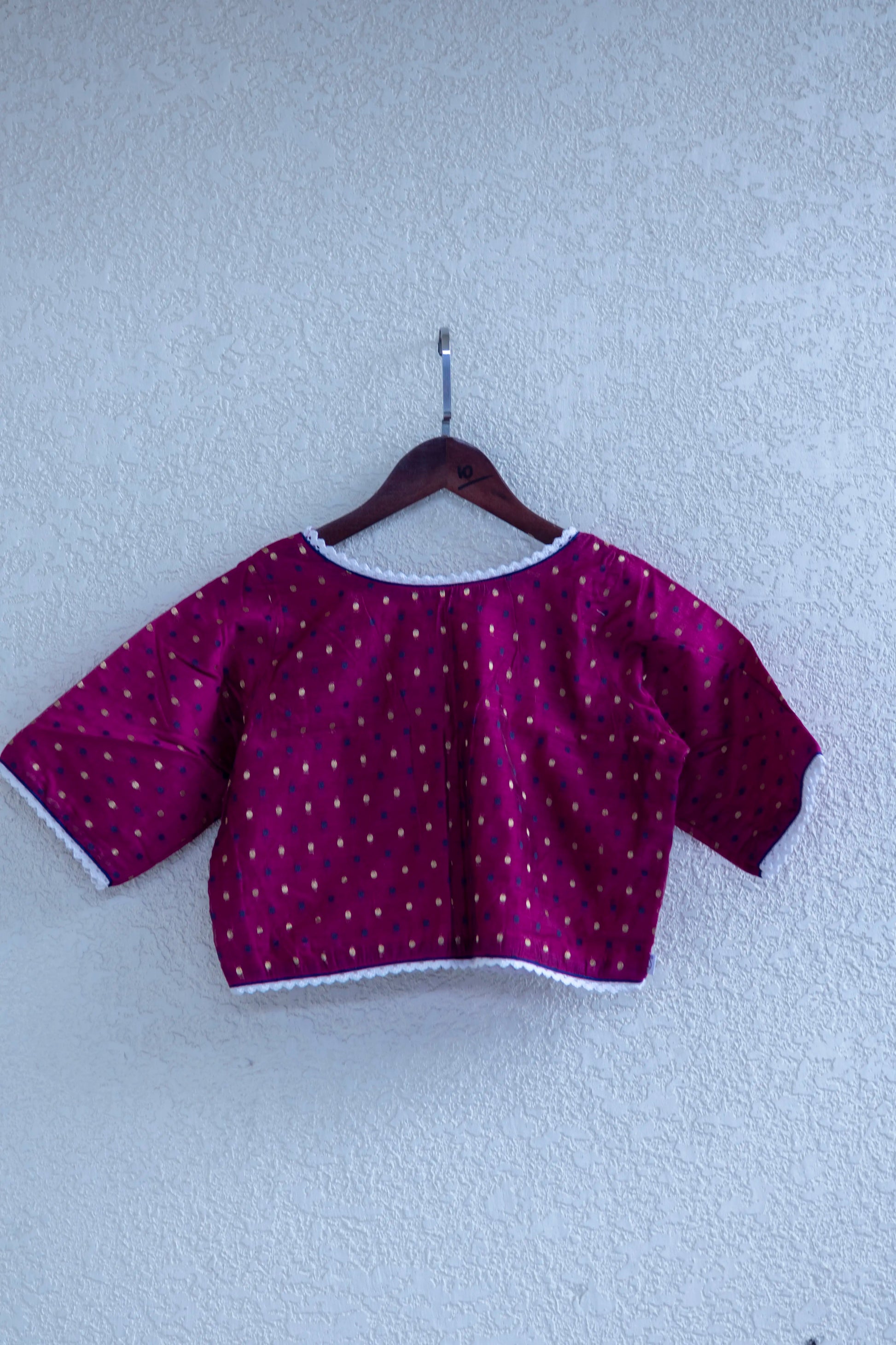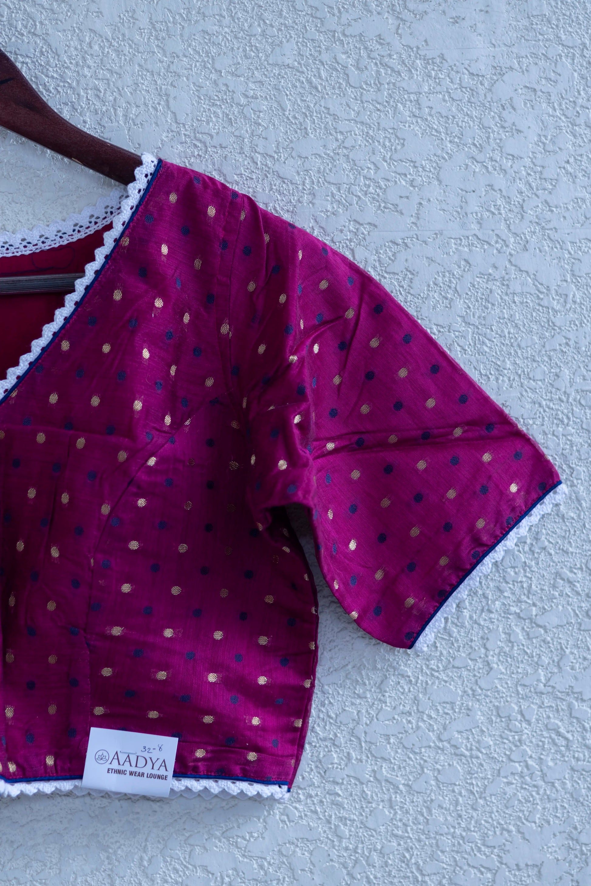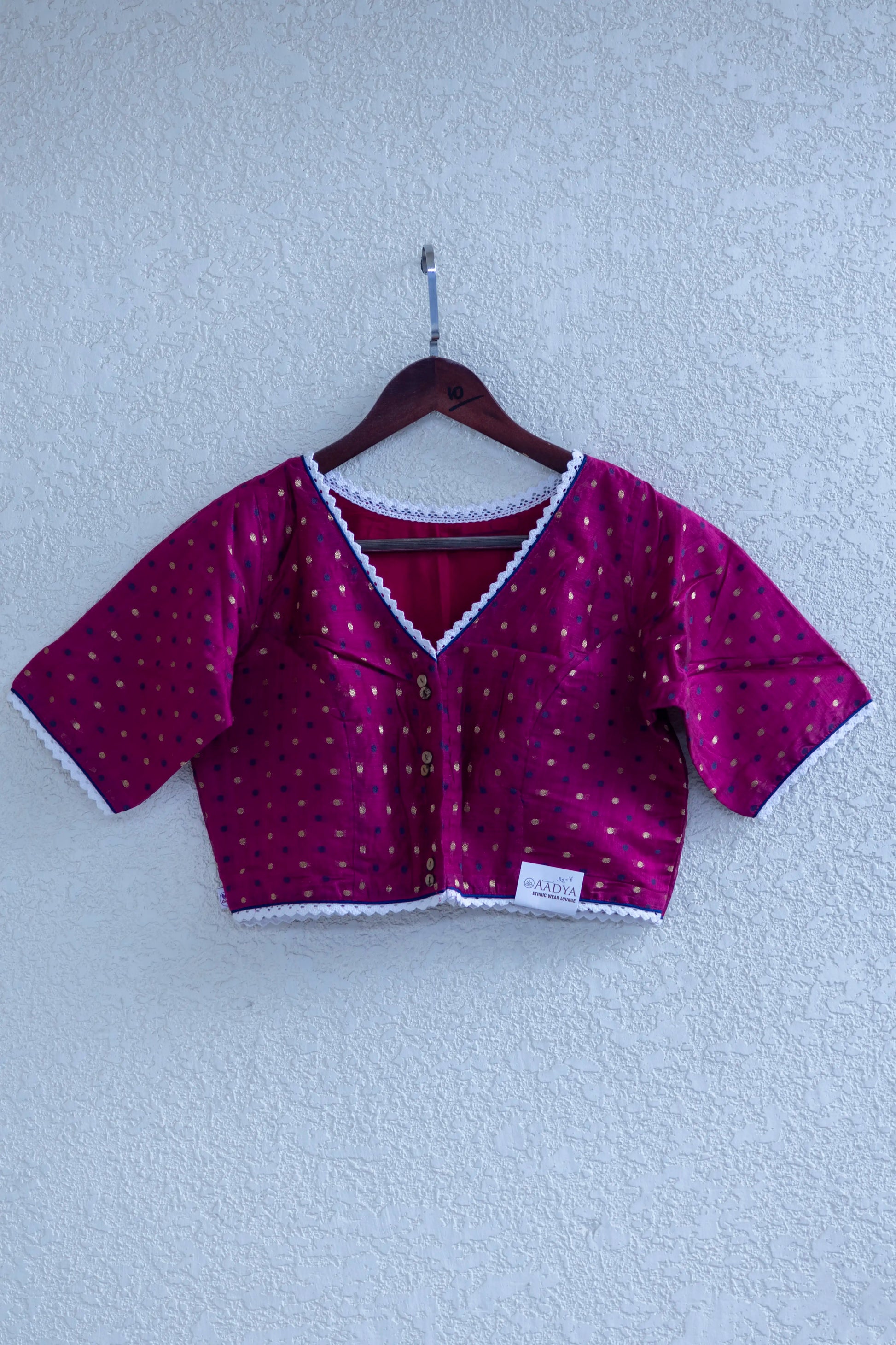 Magenta V Neck Jamdani Elbow Sleeve Blouse