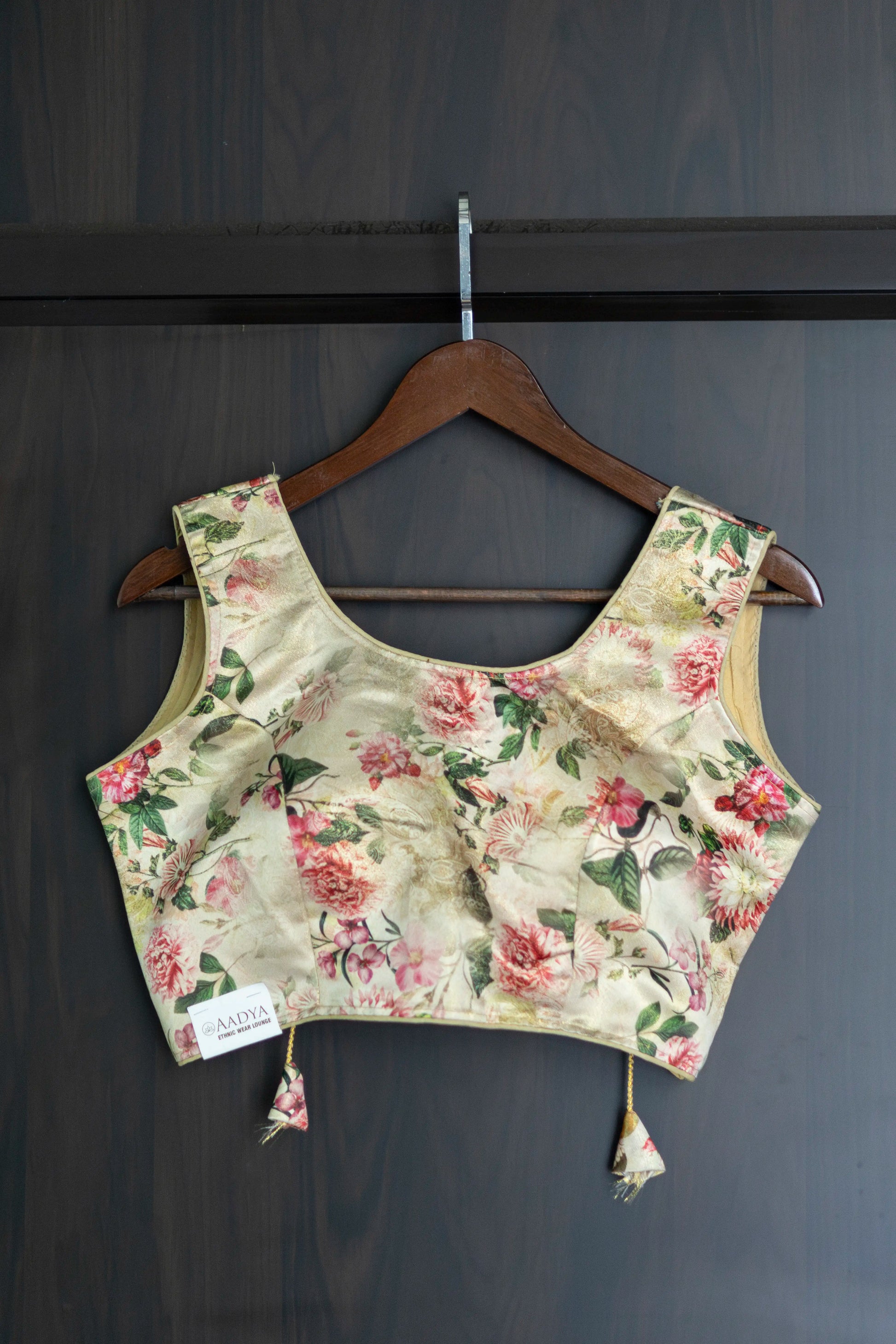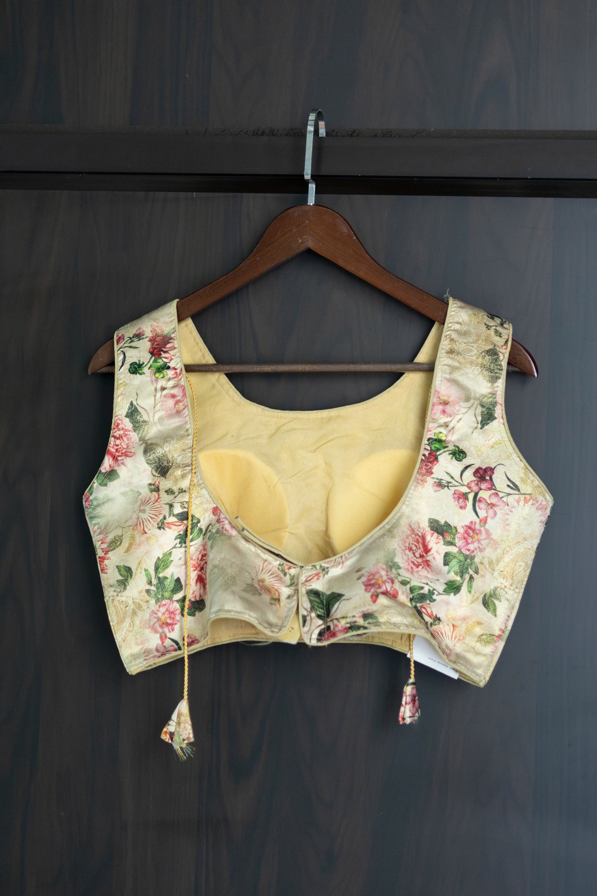 Printed Back Open Readymade Sleeveless Blouse