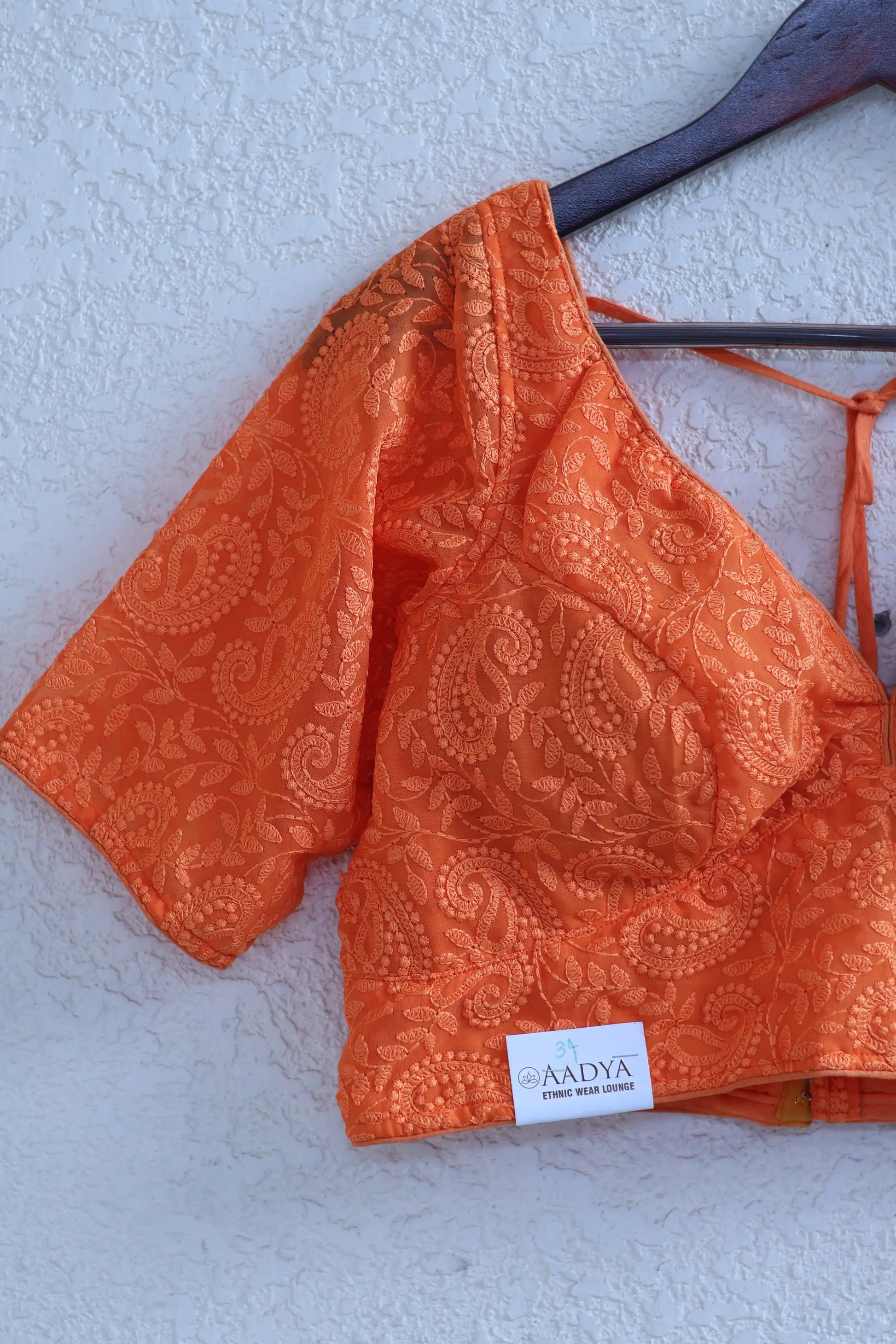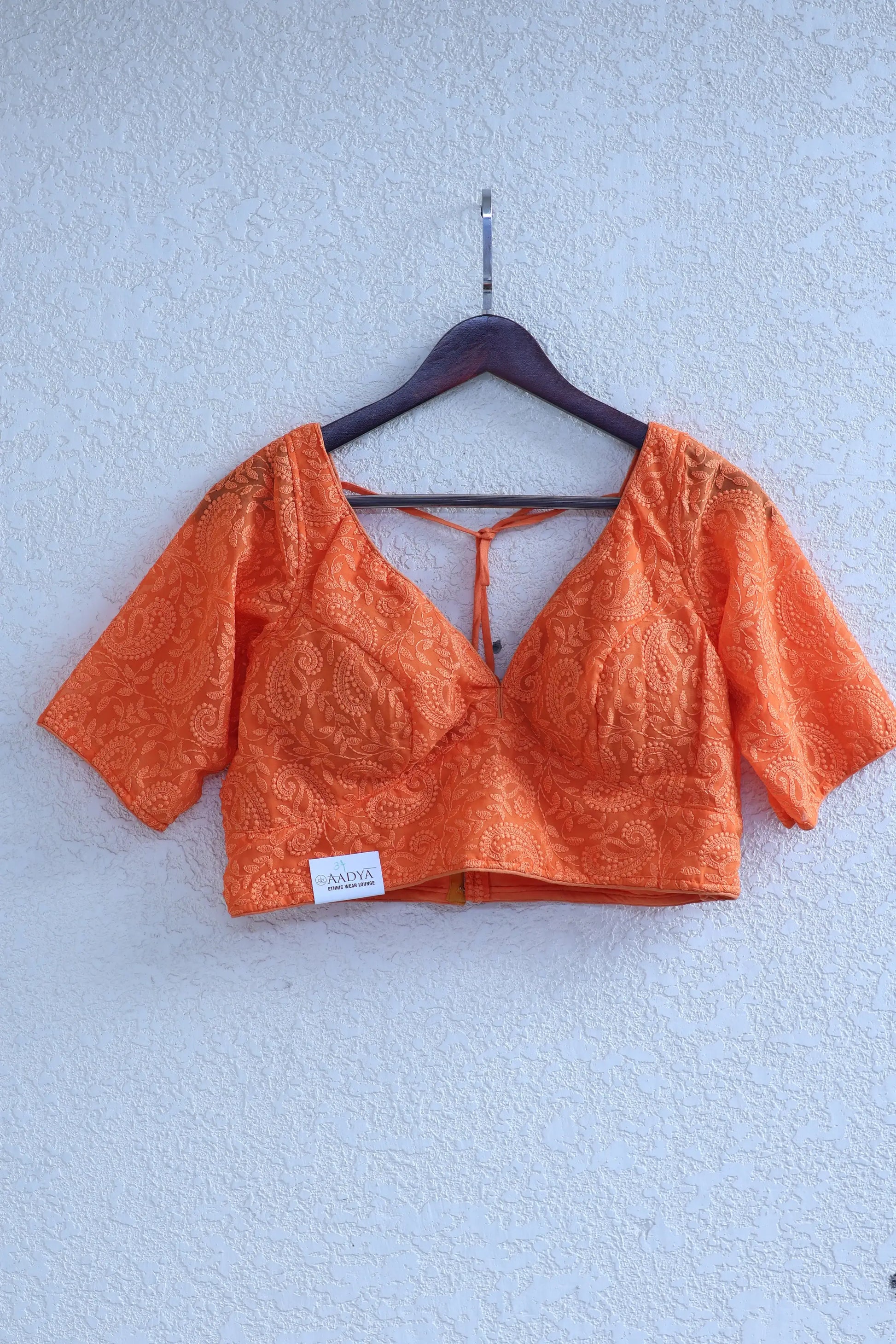 Orange V Neck Chikankari Blouse