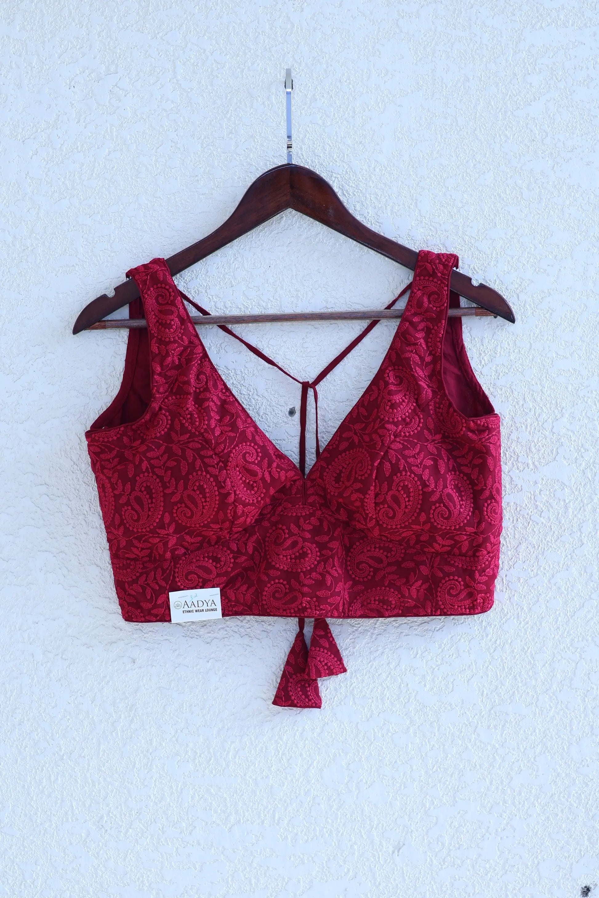 Maroon V Neck Chikankari Sleeveless Blouse