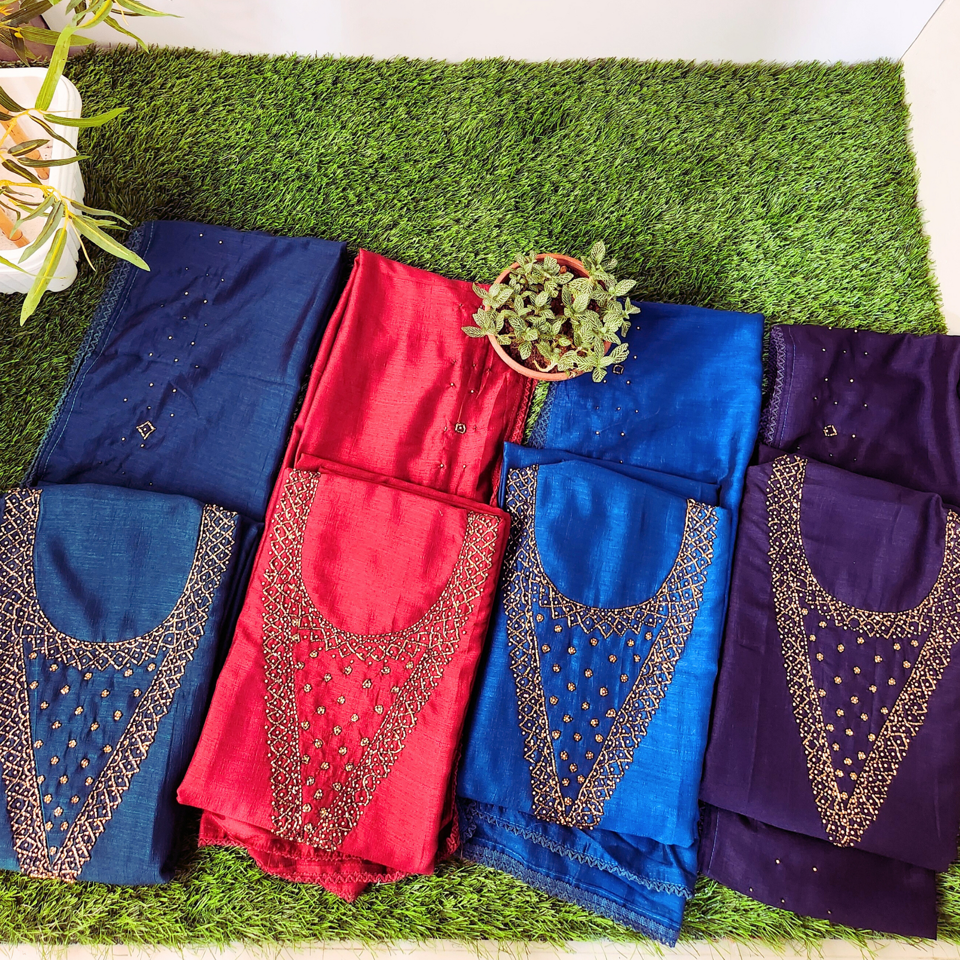 Vichitra Silk With Cut Dhana Work Salwar Set