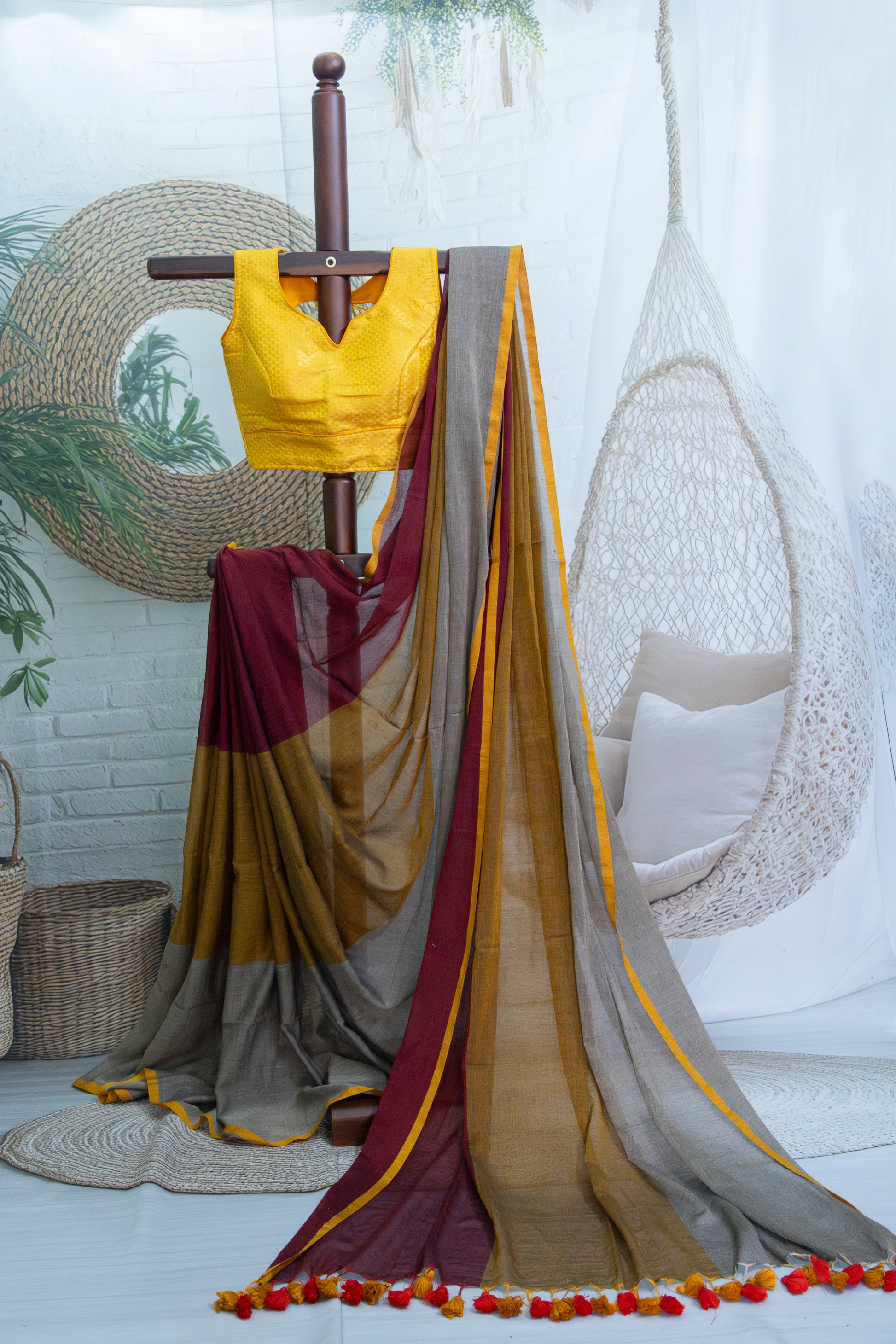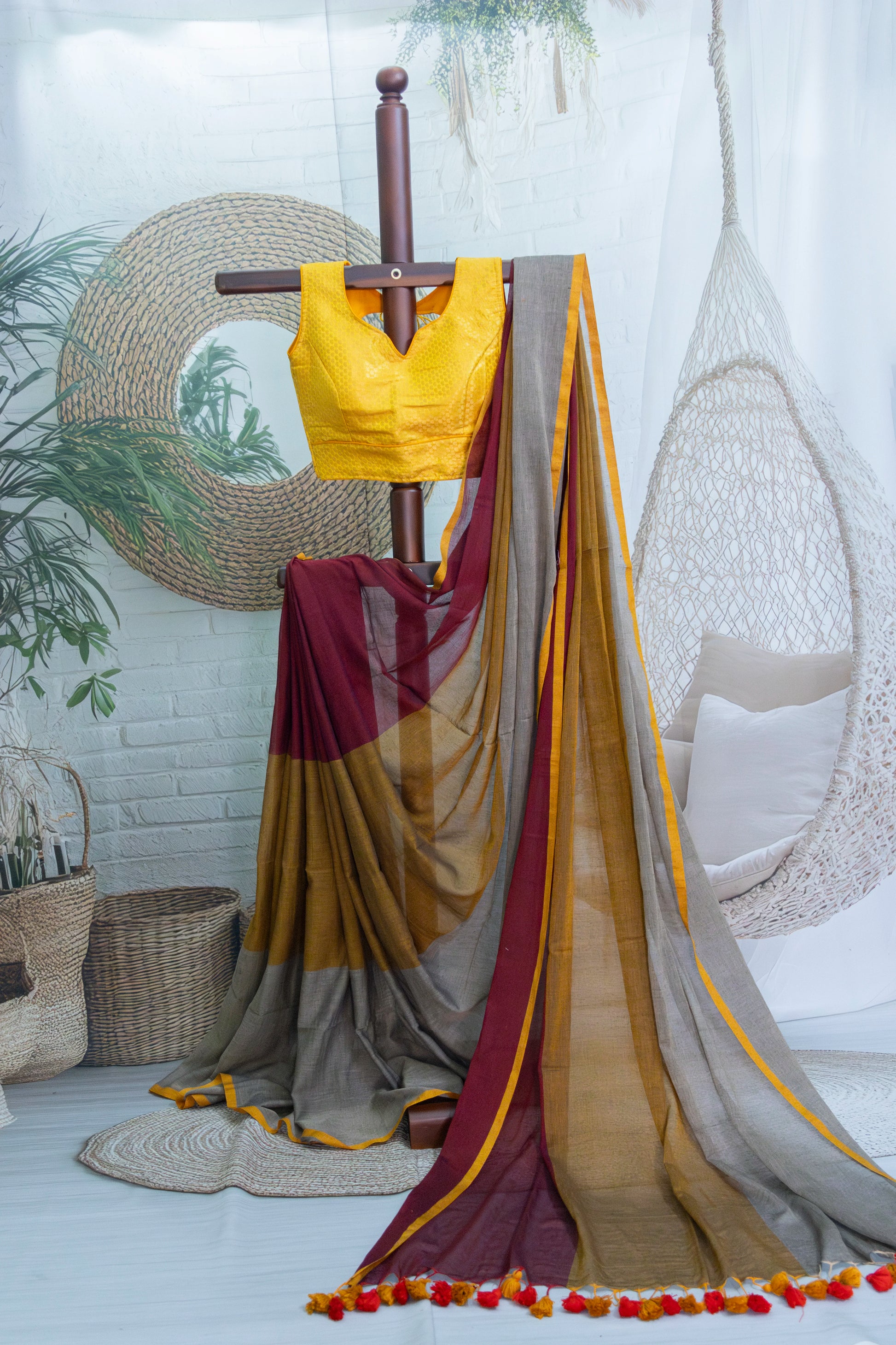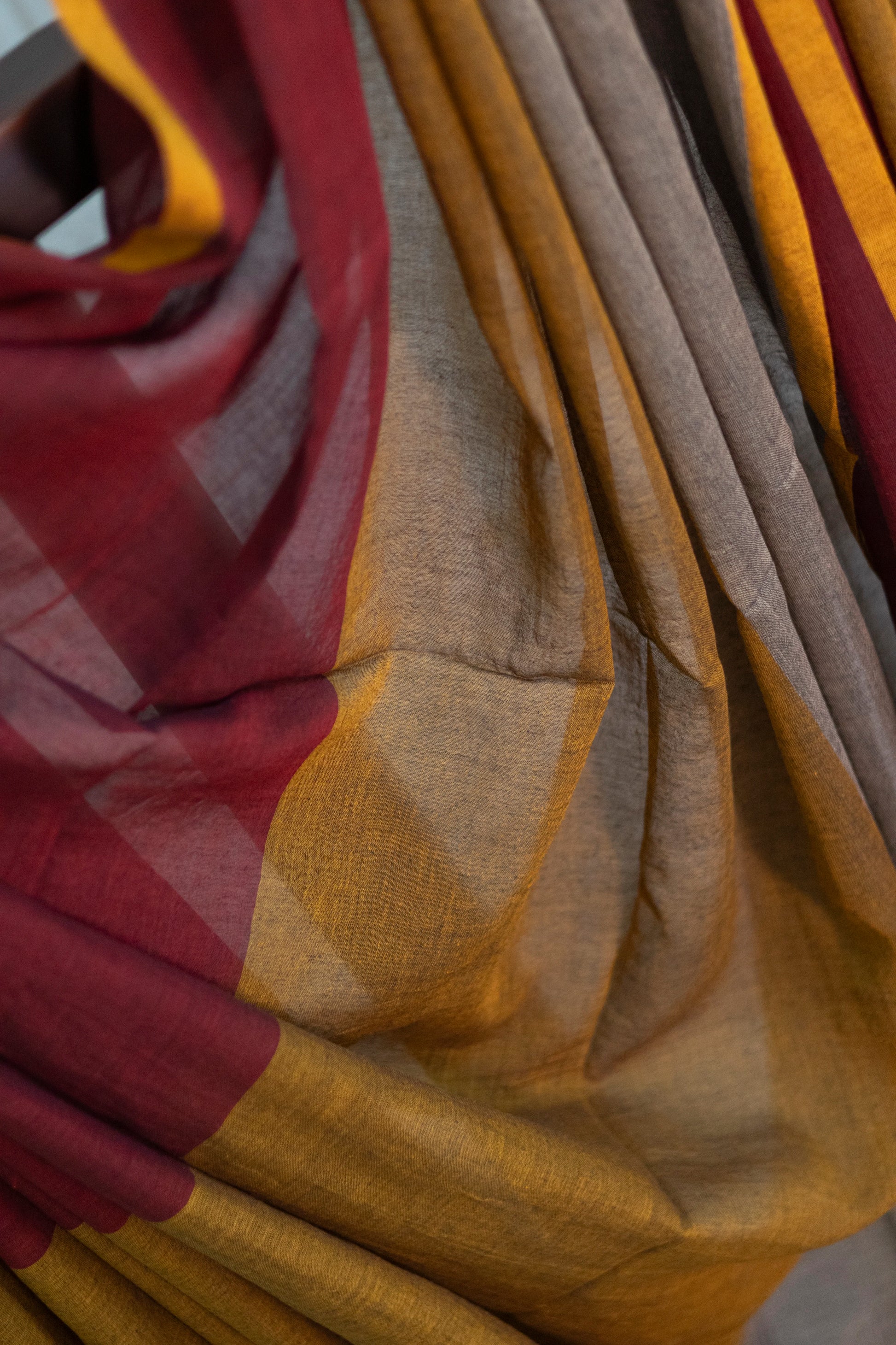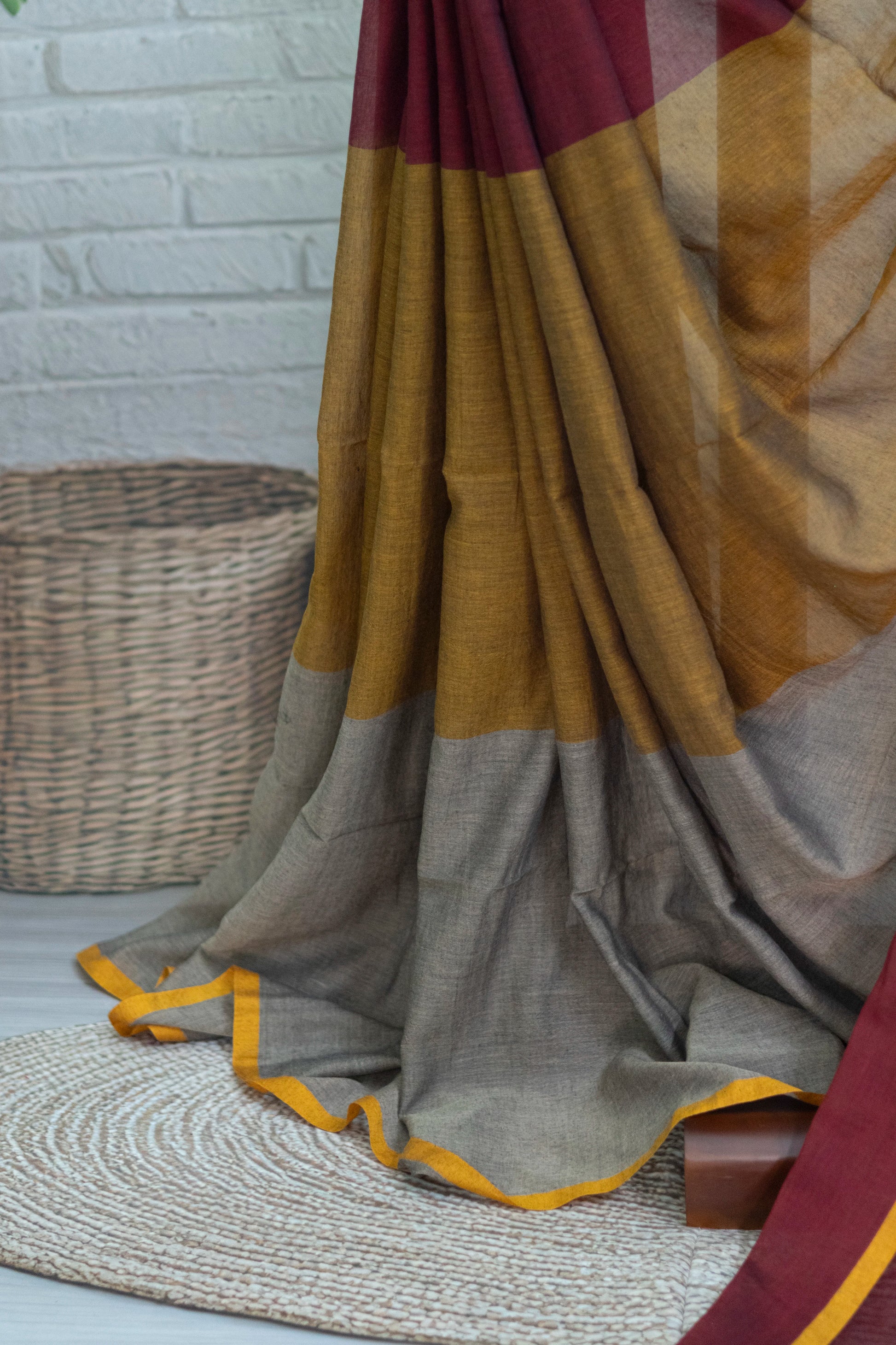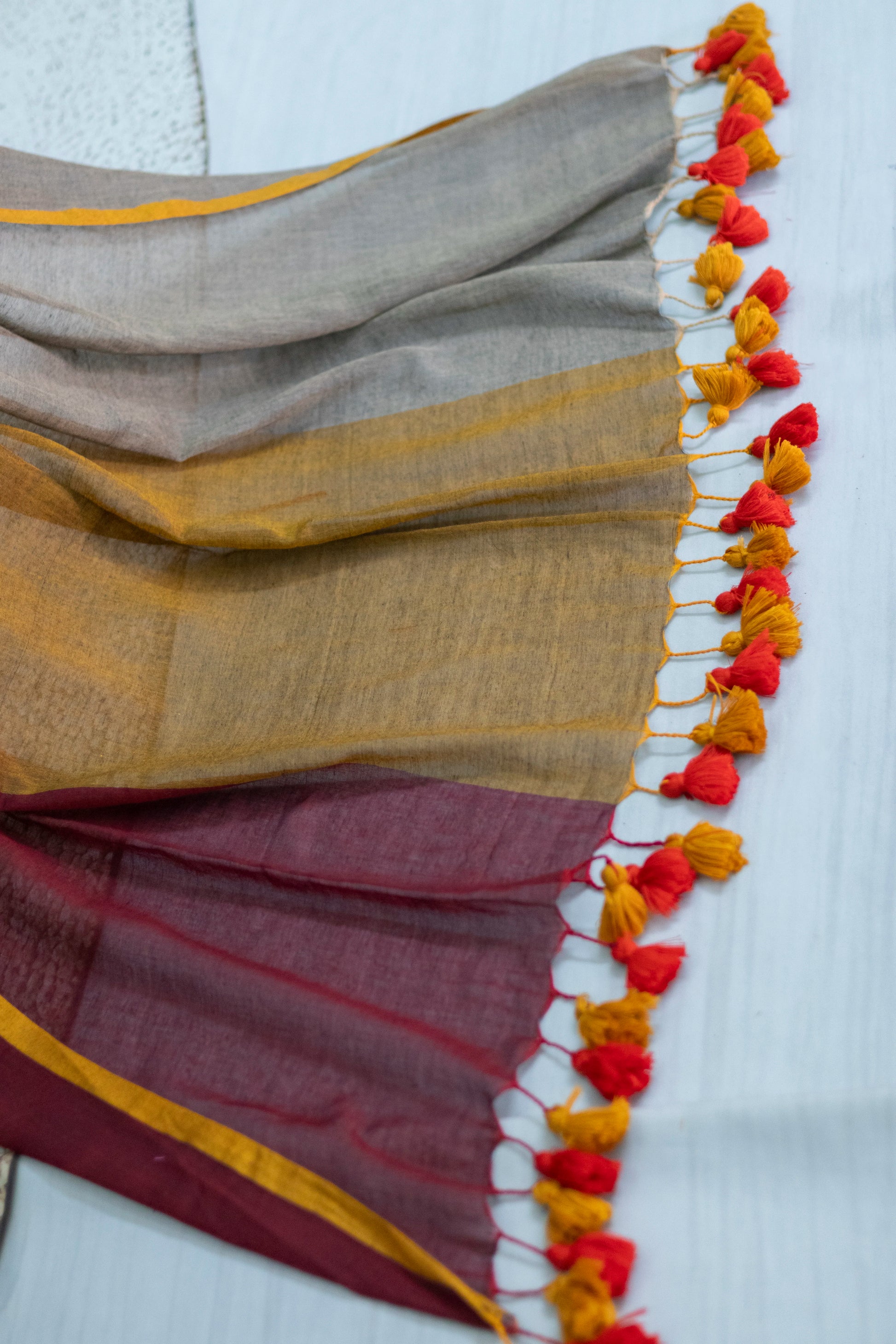Maroon Plain Handloom Mul Cotton Saree
