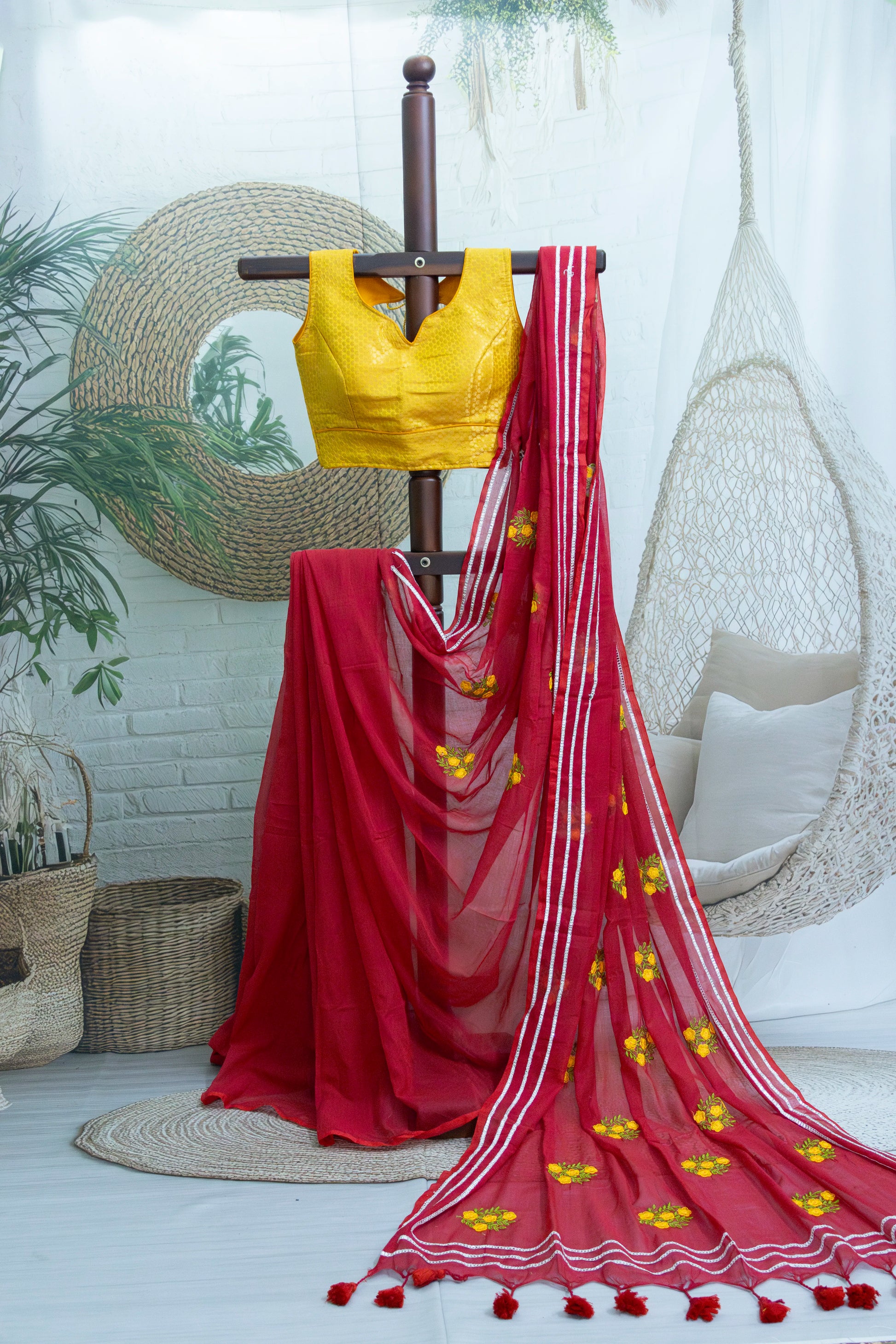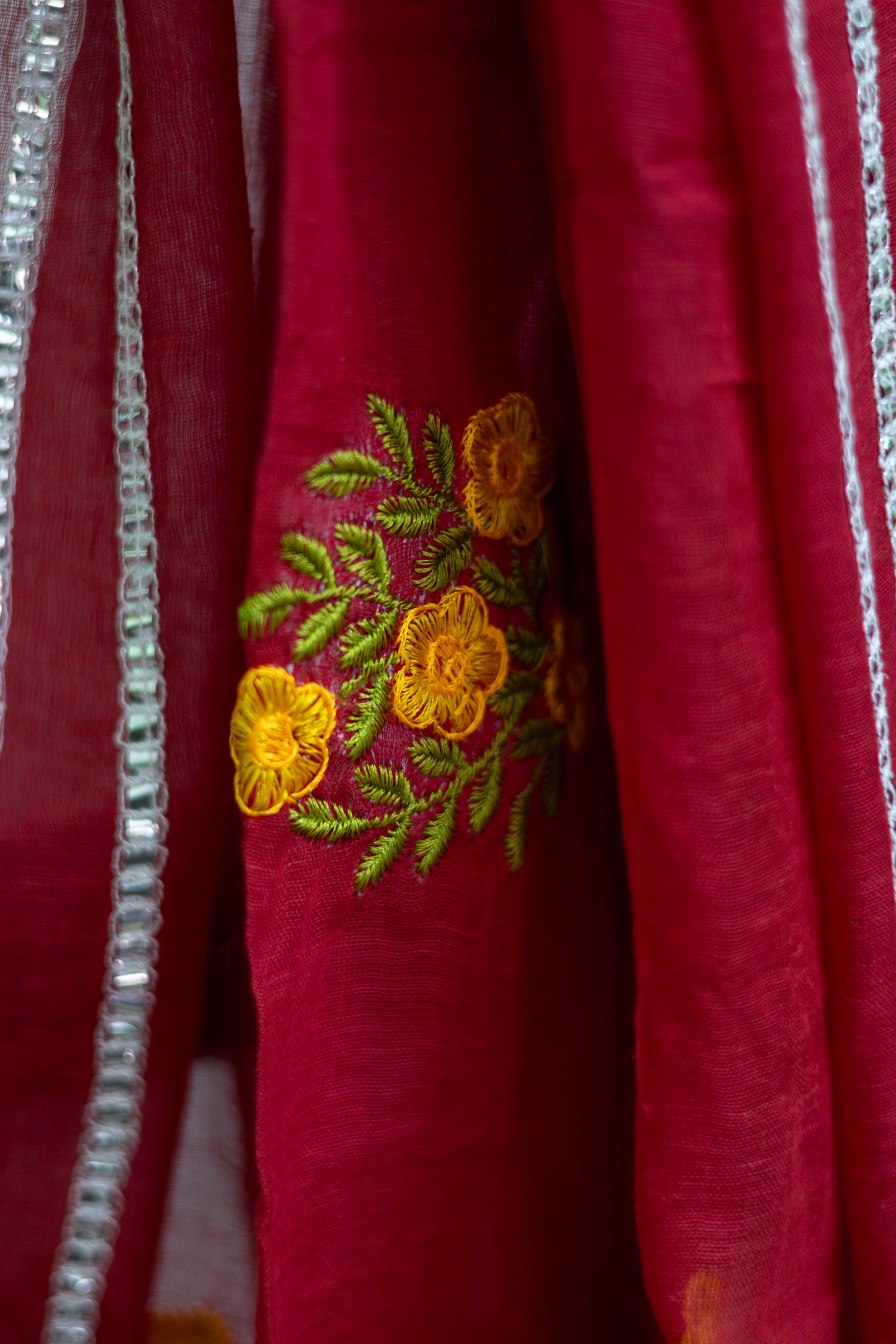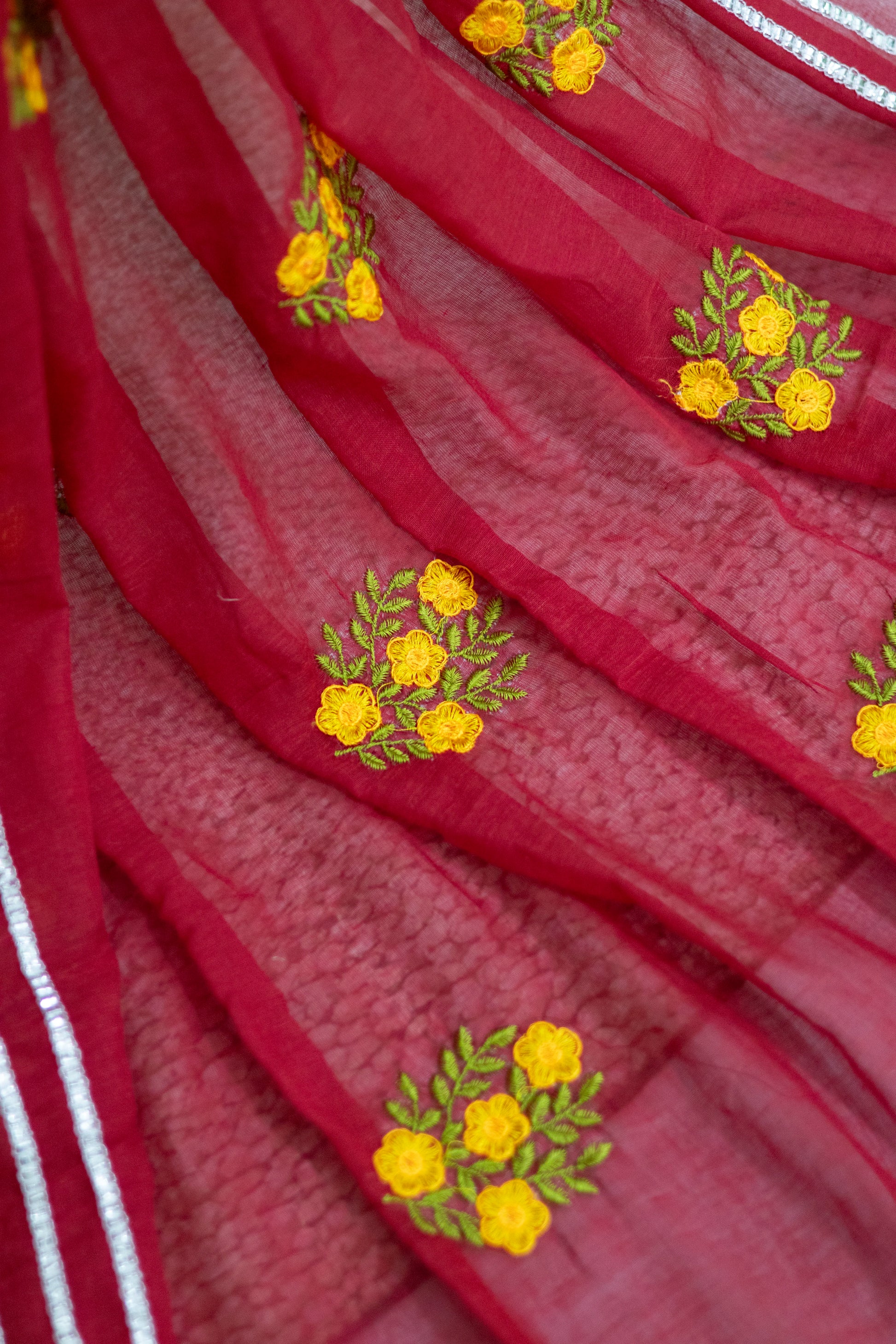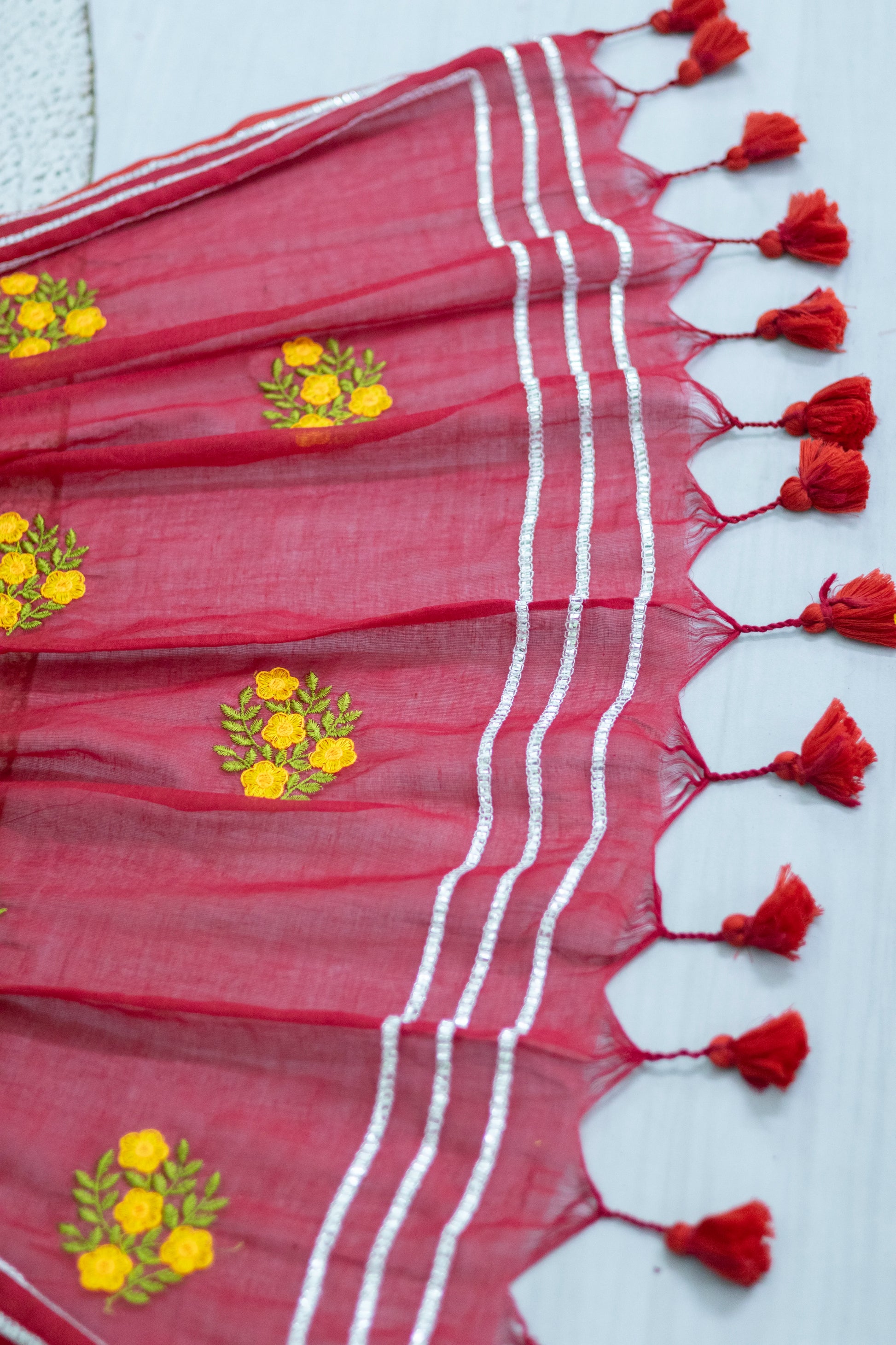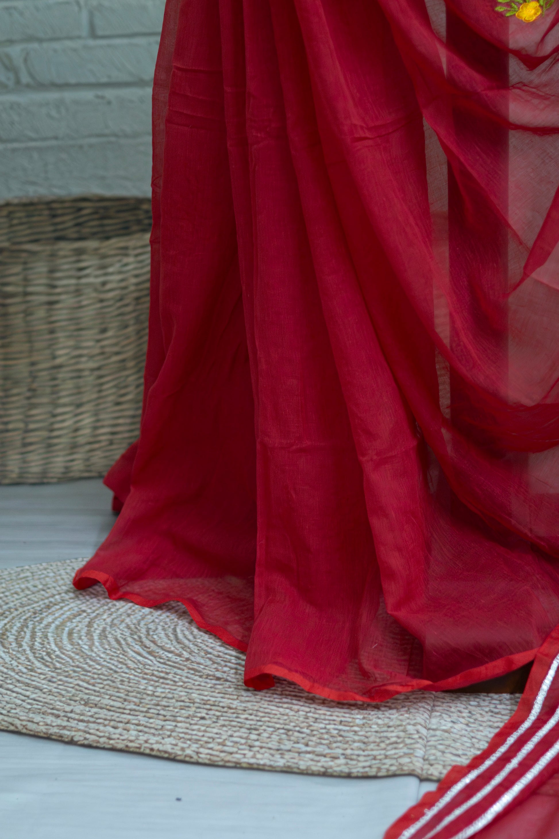 Red Colour Mul Cotton Embroidery Saree