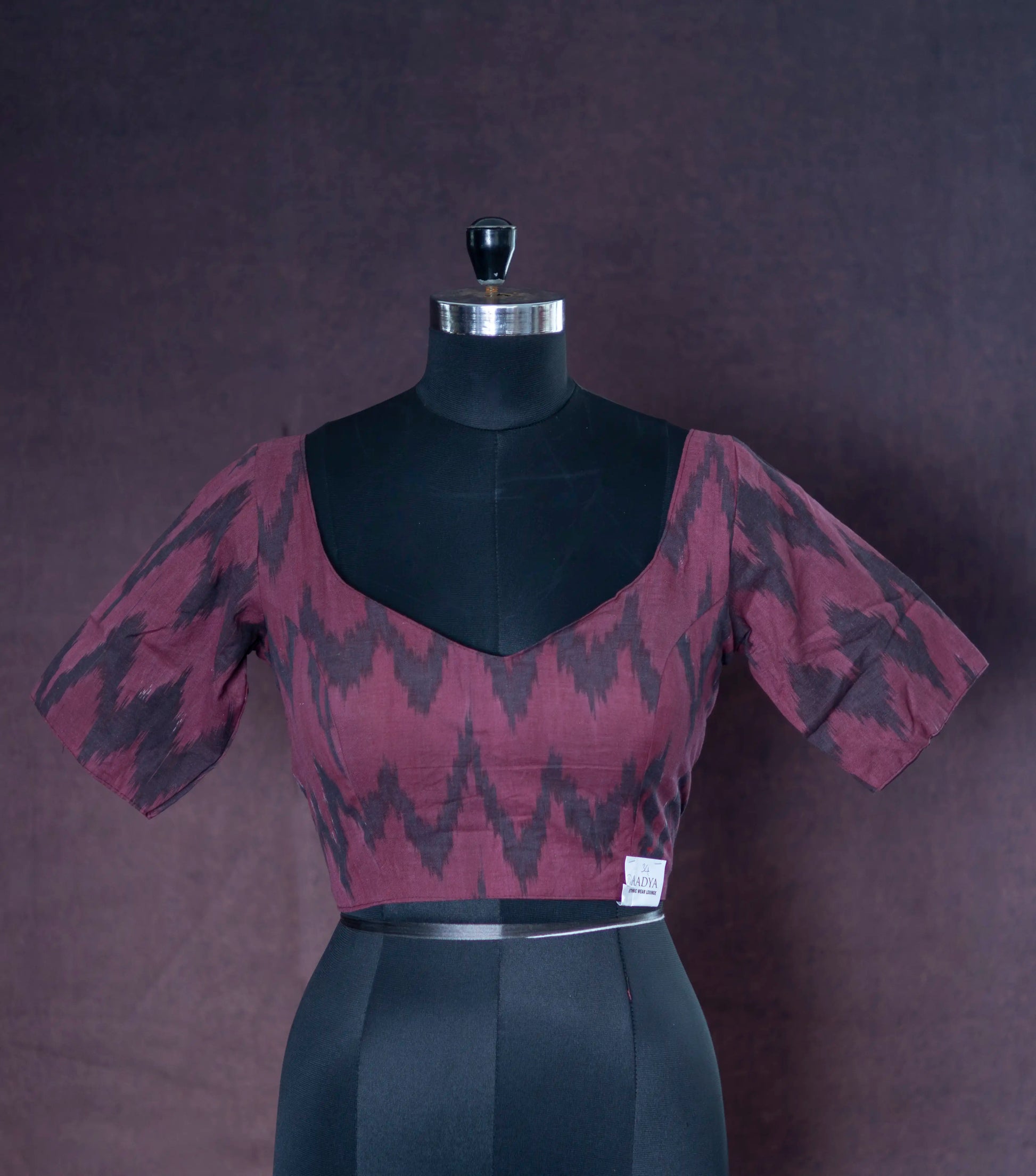 Blue Sweet Heart Ikat Elbow Sleeve Blouse