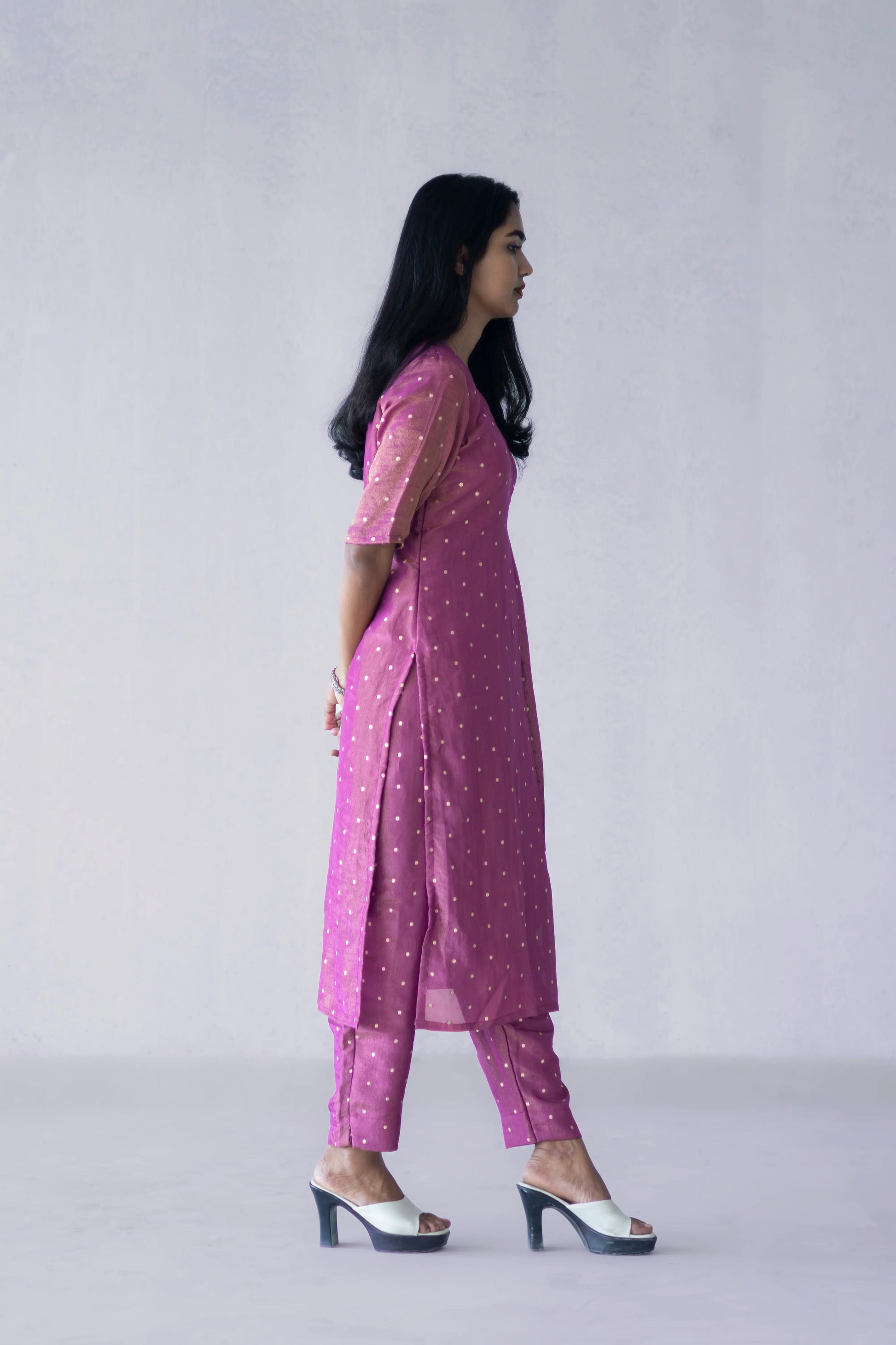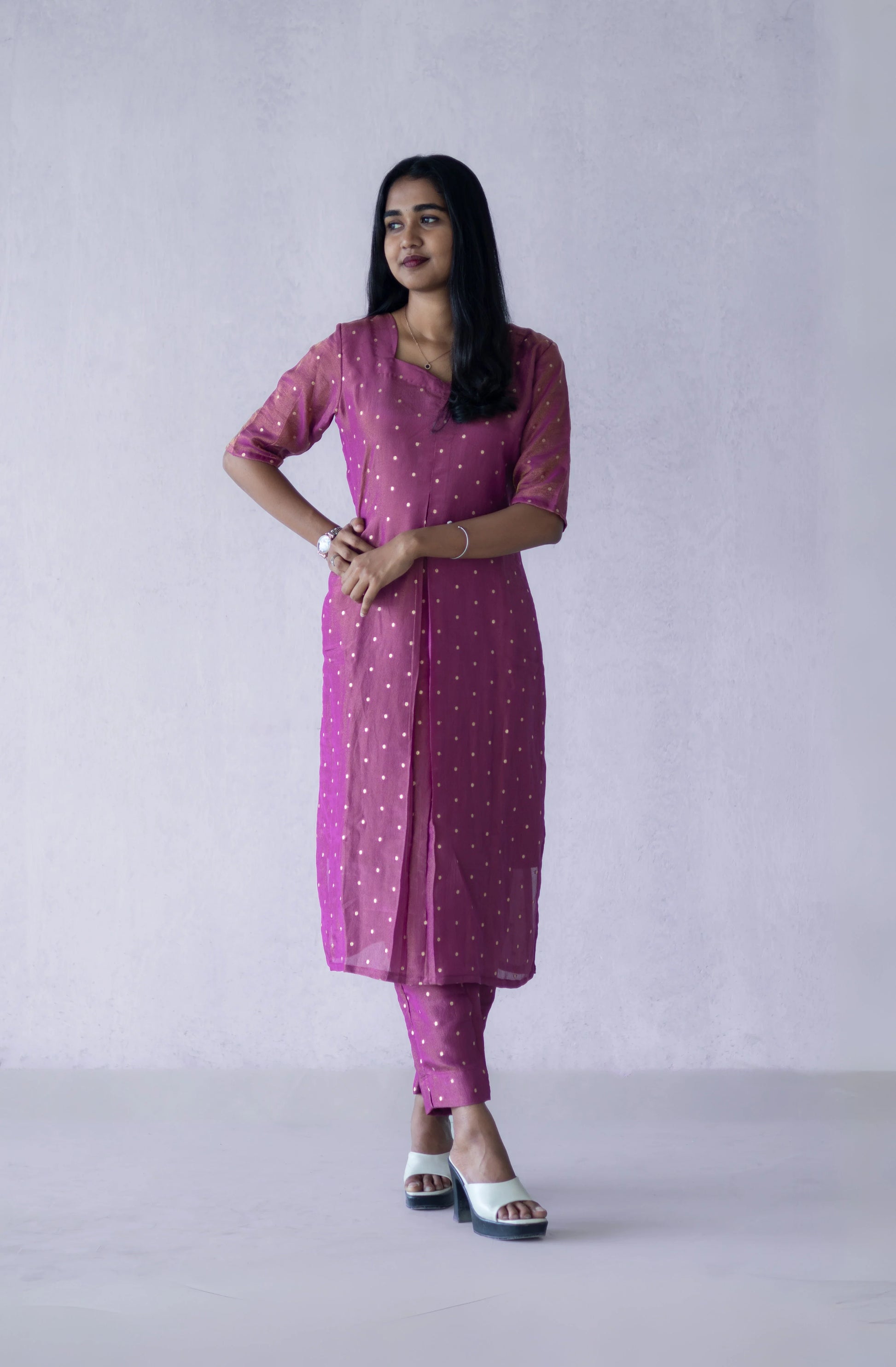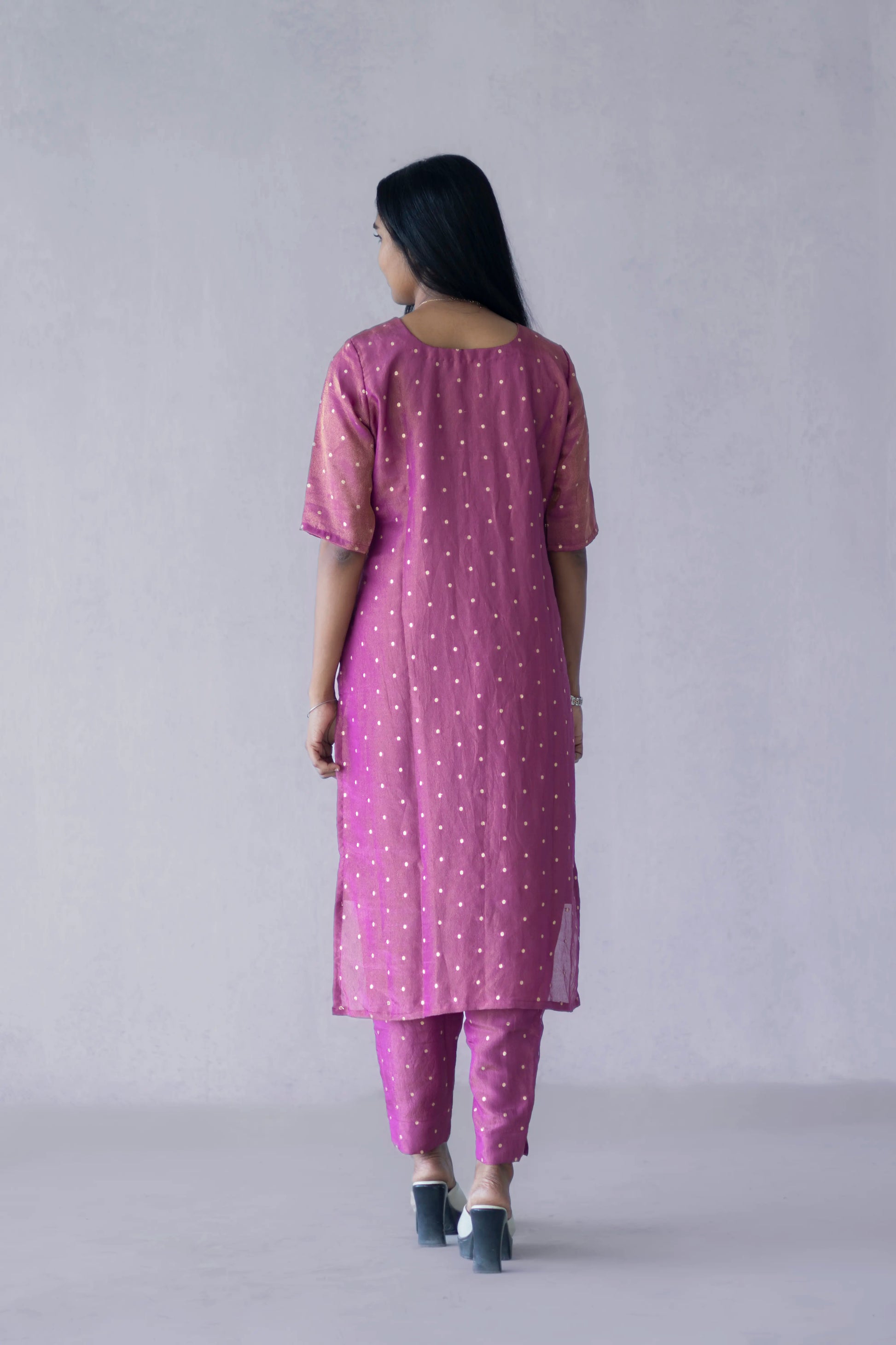 Purple Tissue Jacquard Kurti Bottom Set