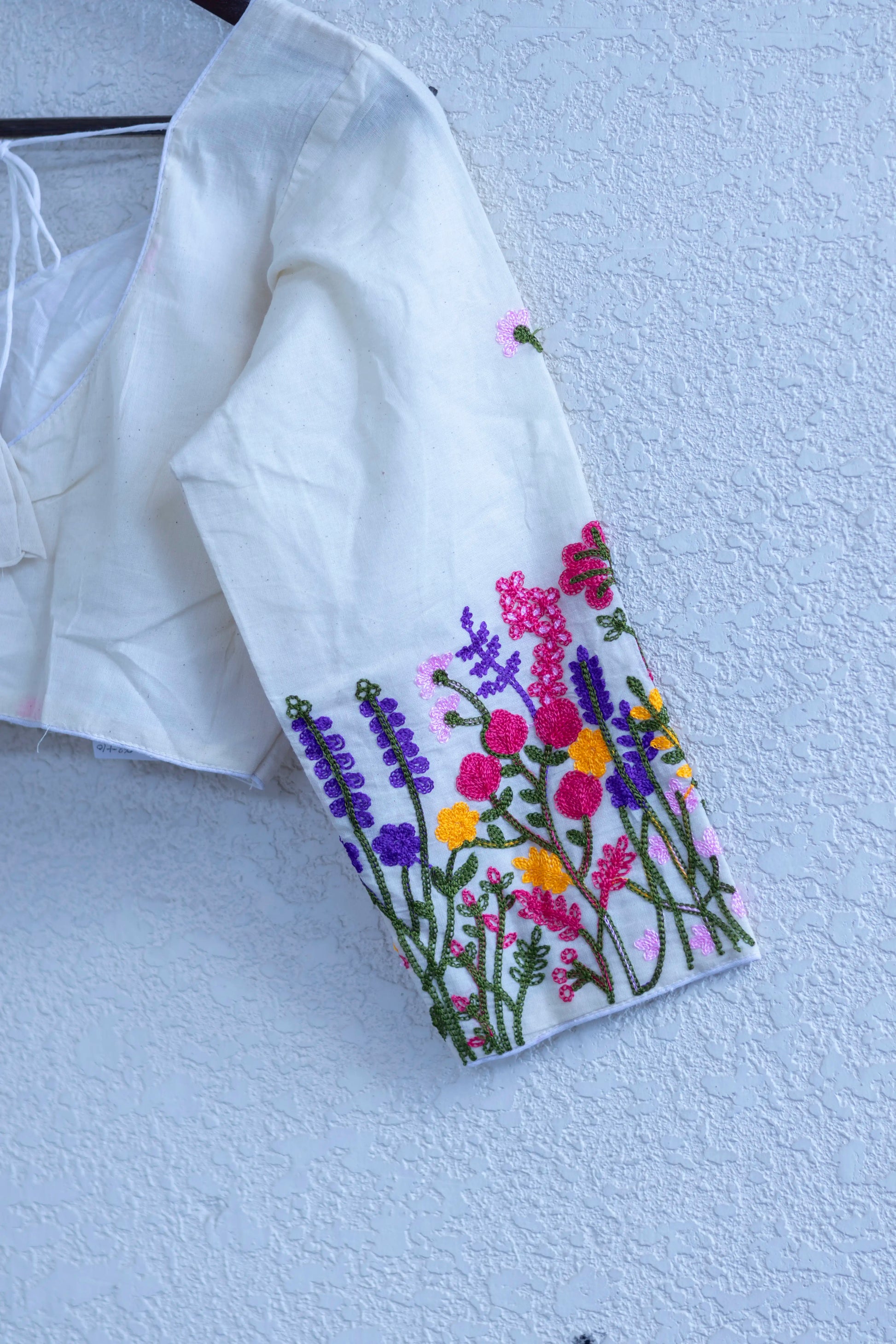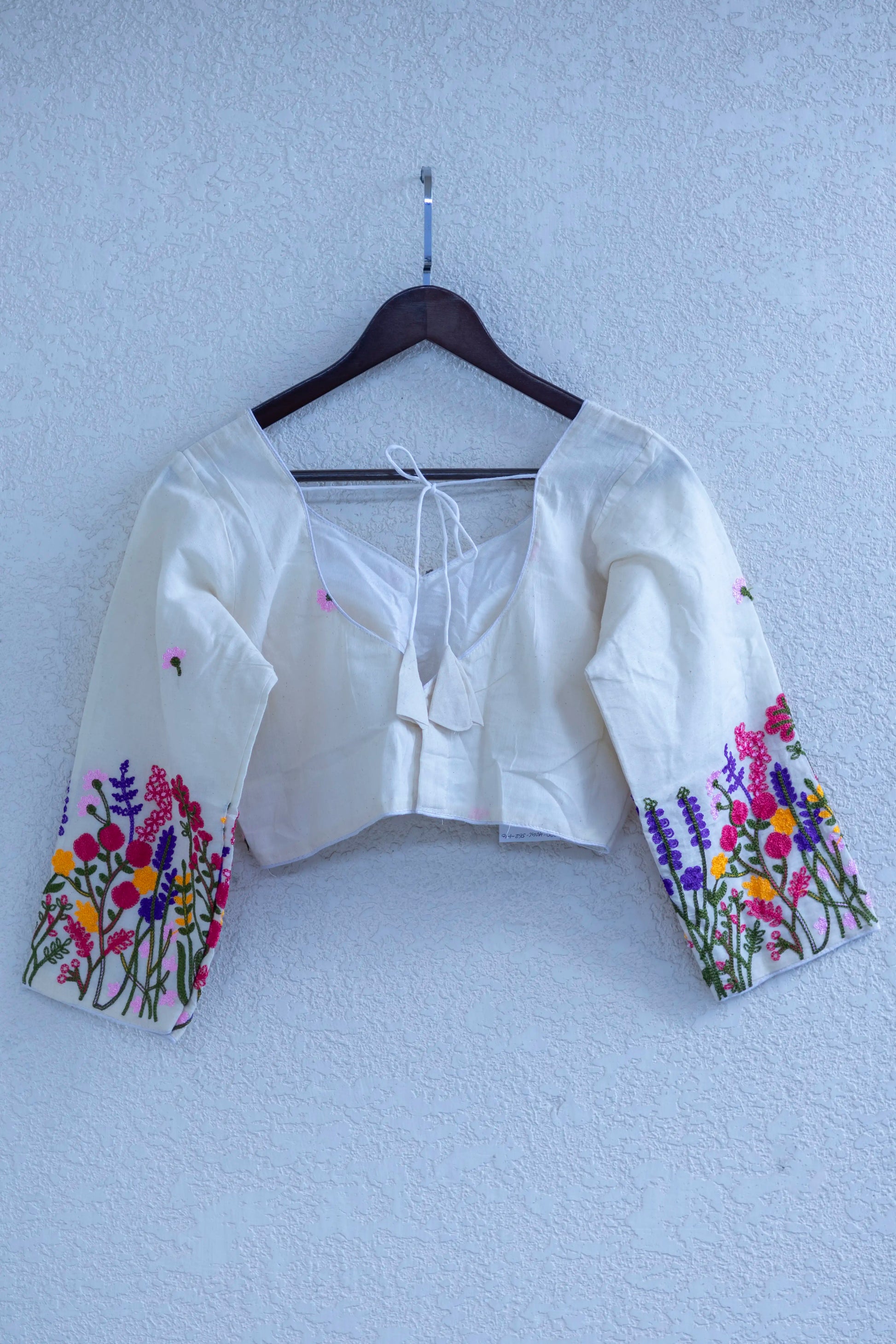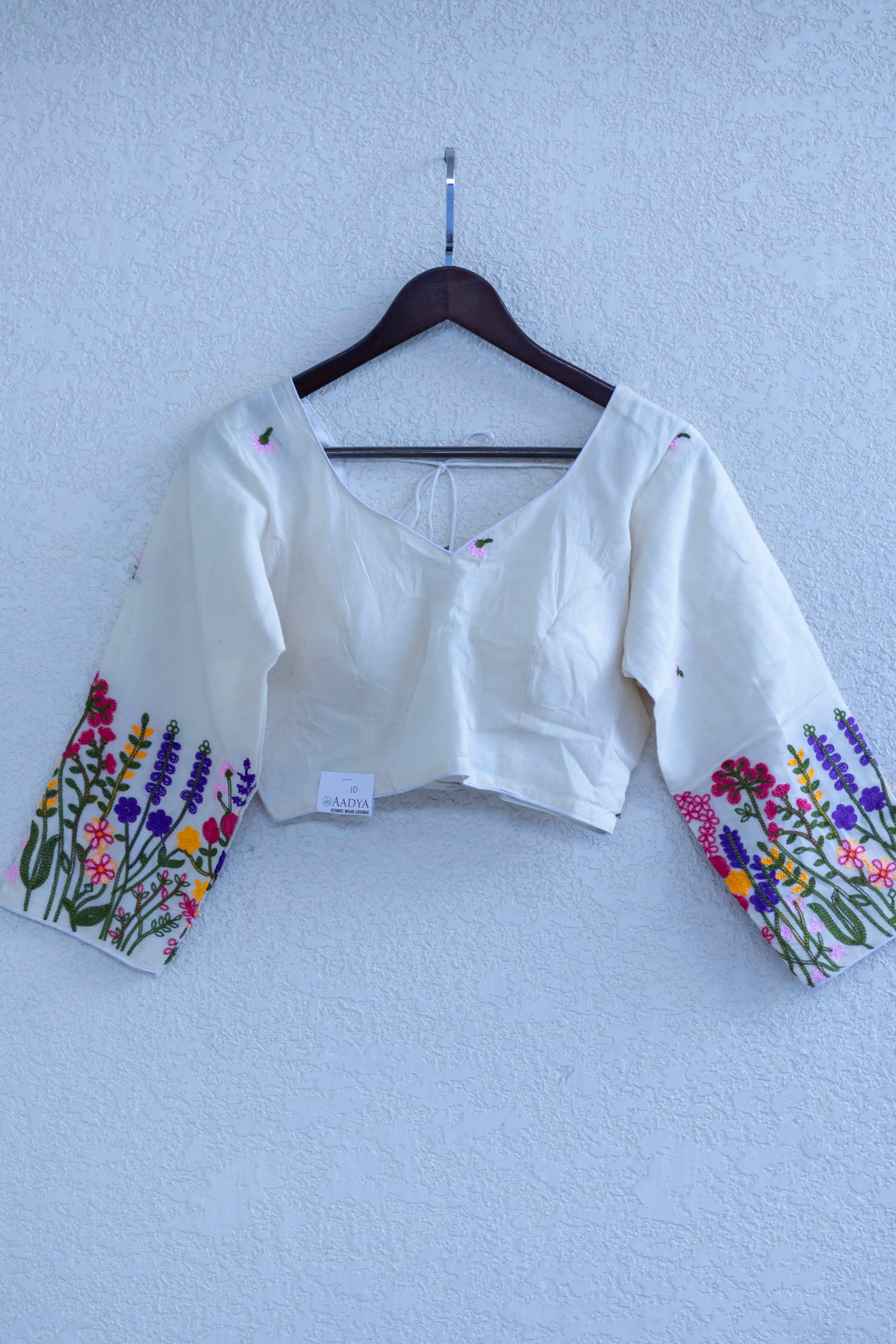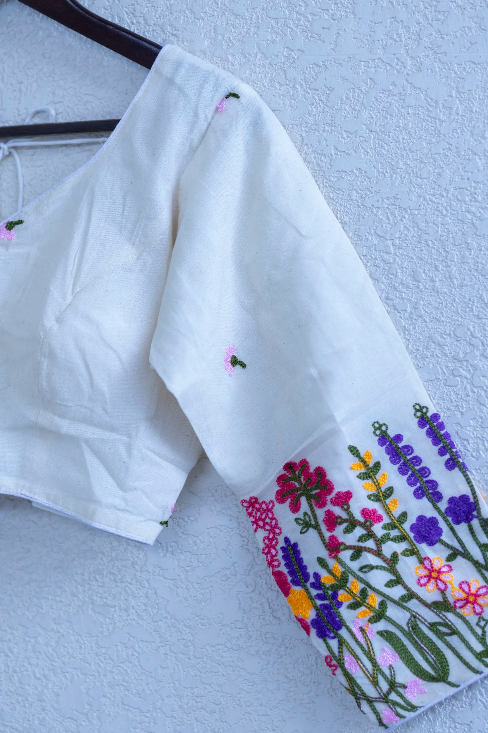 White Leaf Neck Khadi Cotton Full Sleeve Blouse