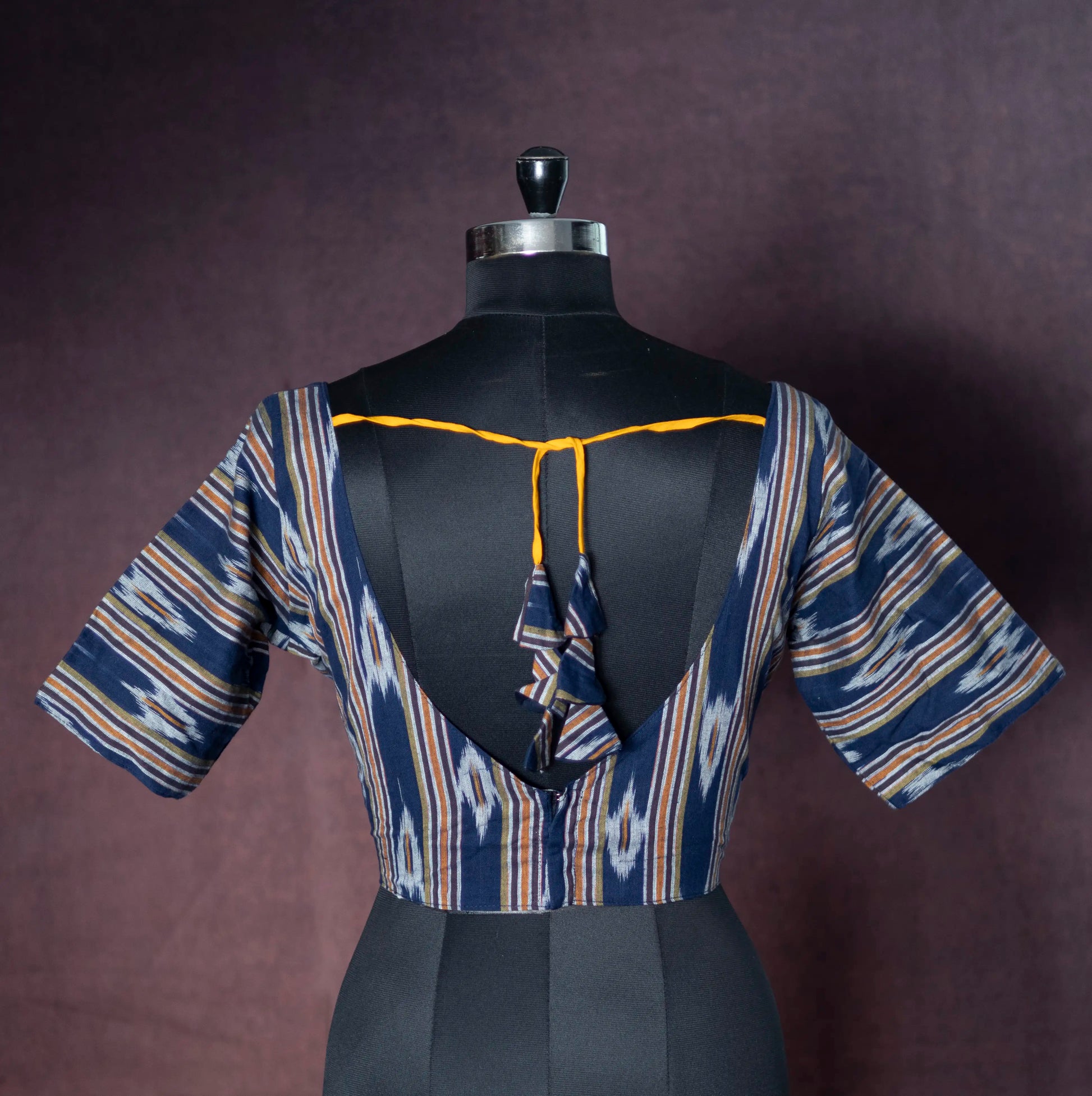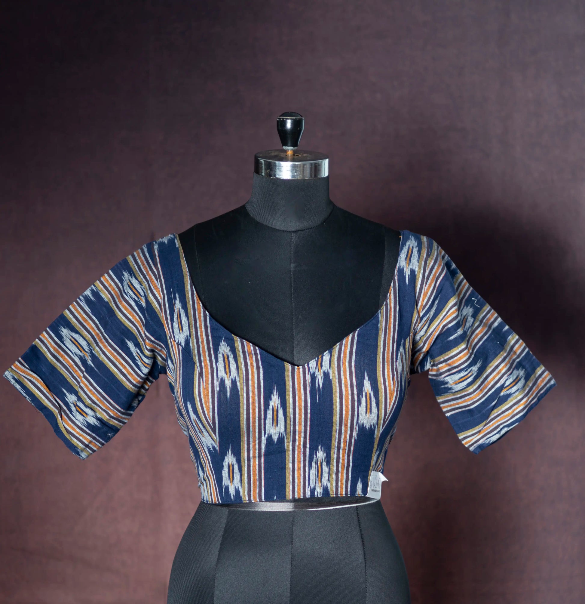 Blue Sweet Heart Ikat Elbow Sleeve Blouse