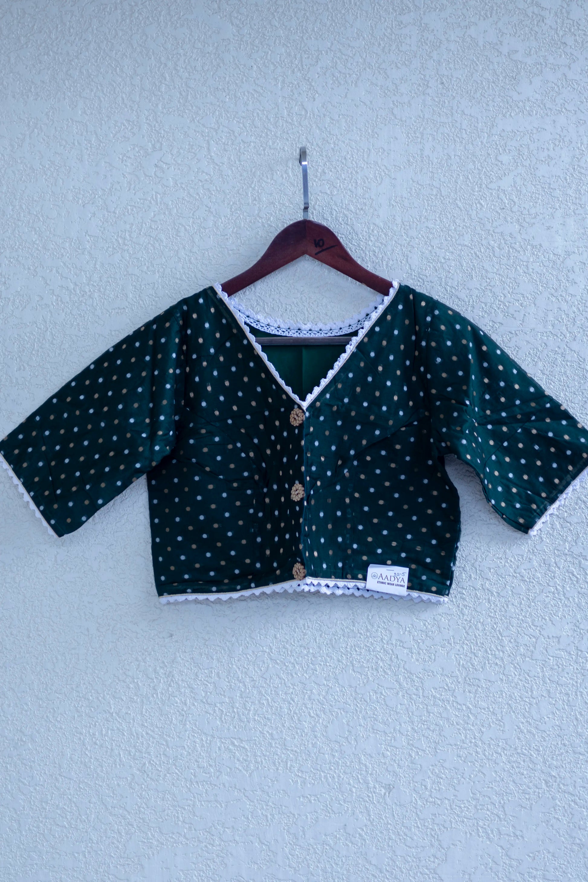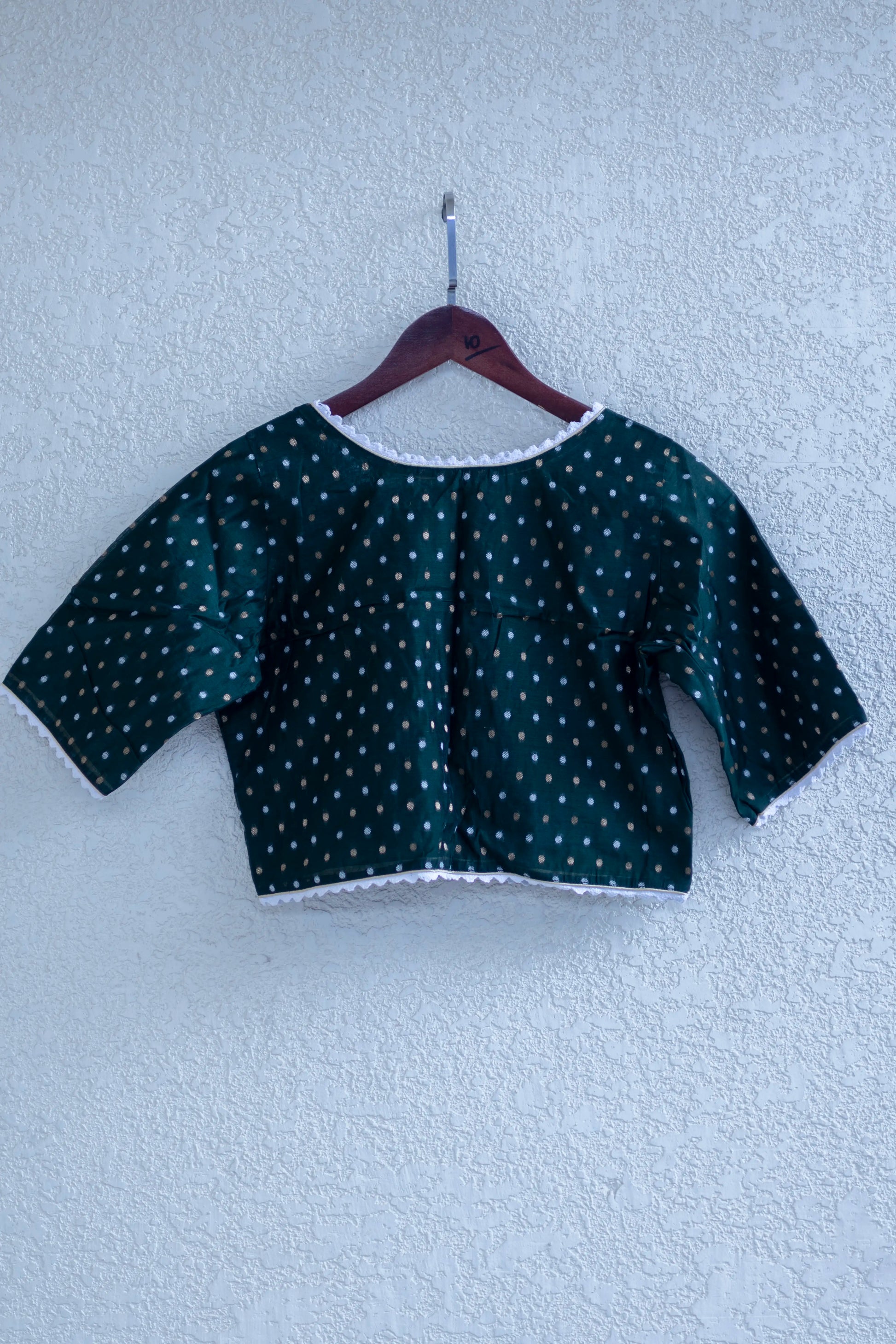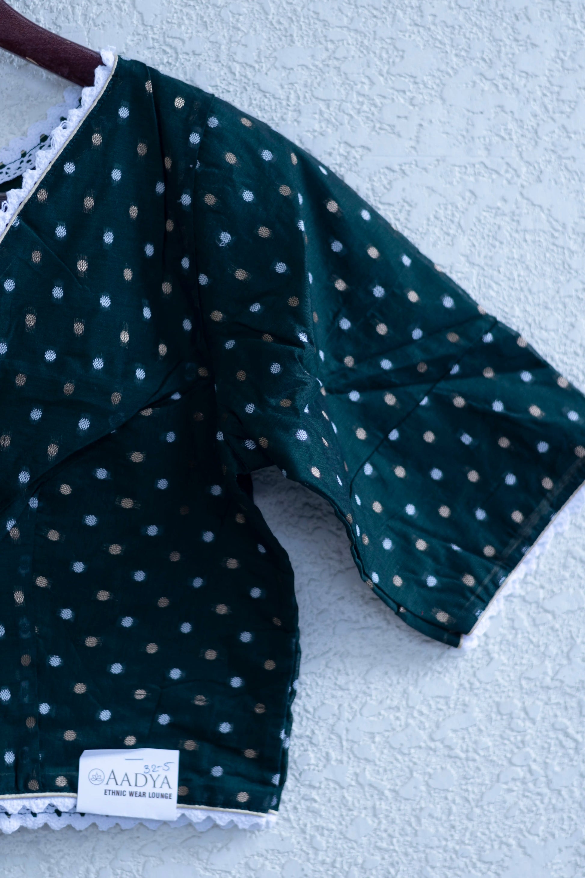 Peacock Blue V Neck Jamdani Elbow Sleeve Blouse