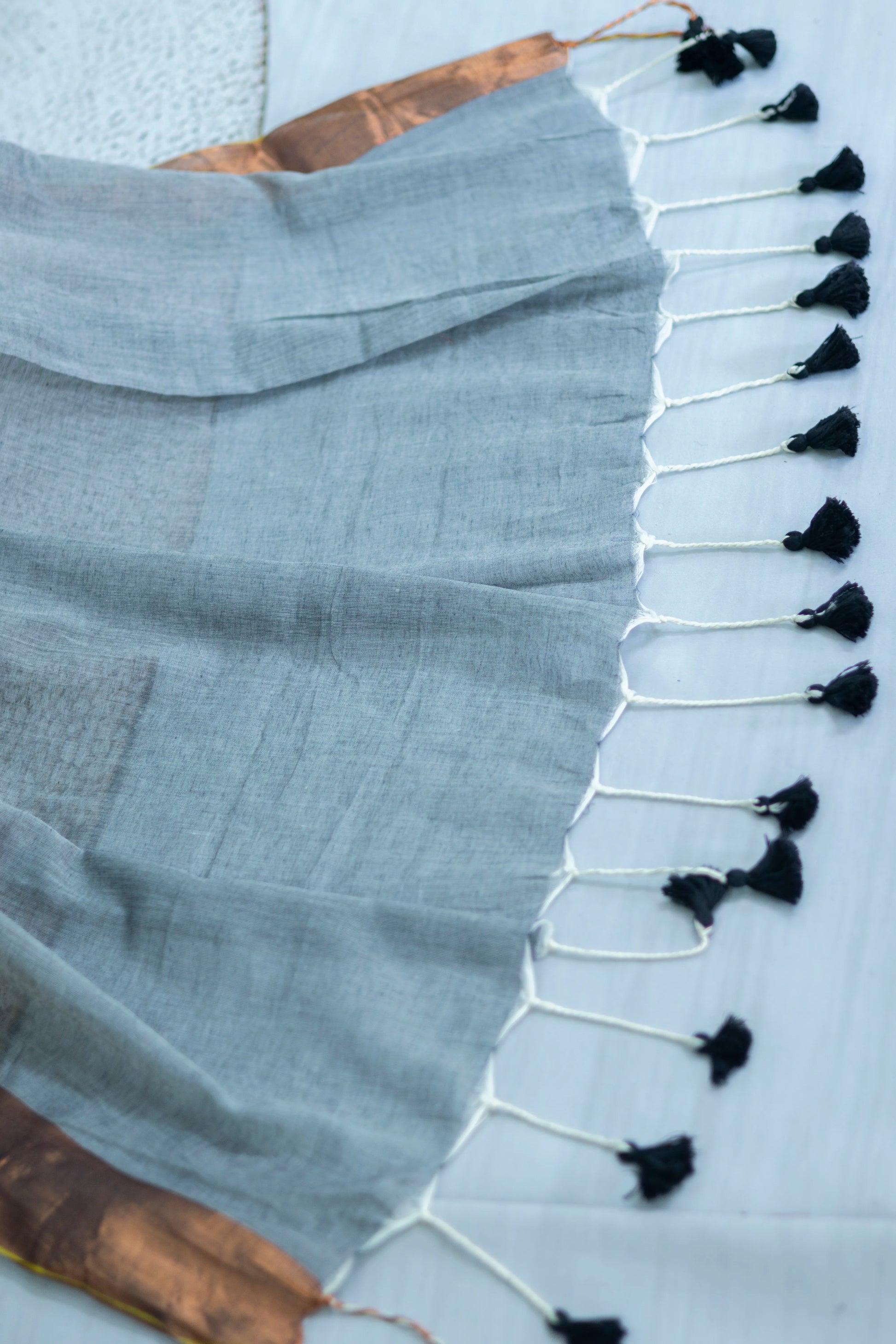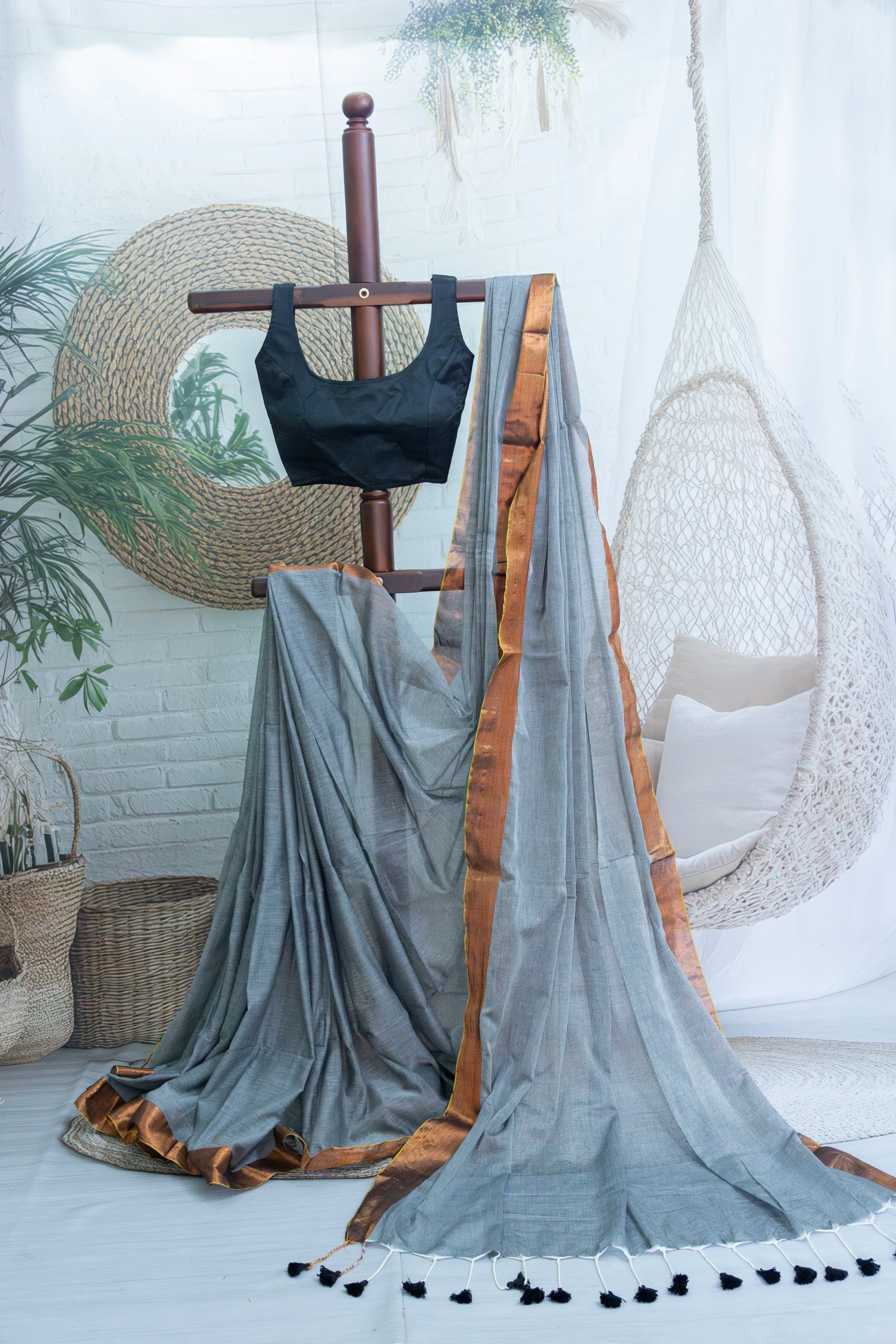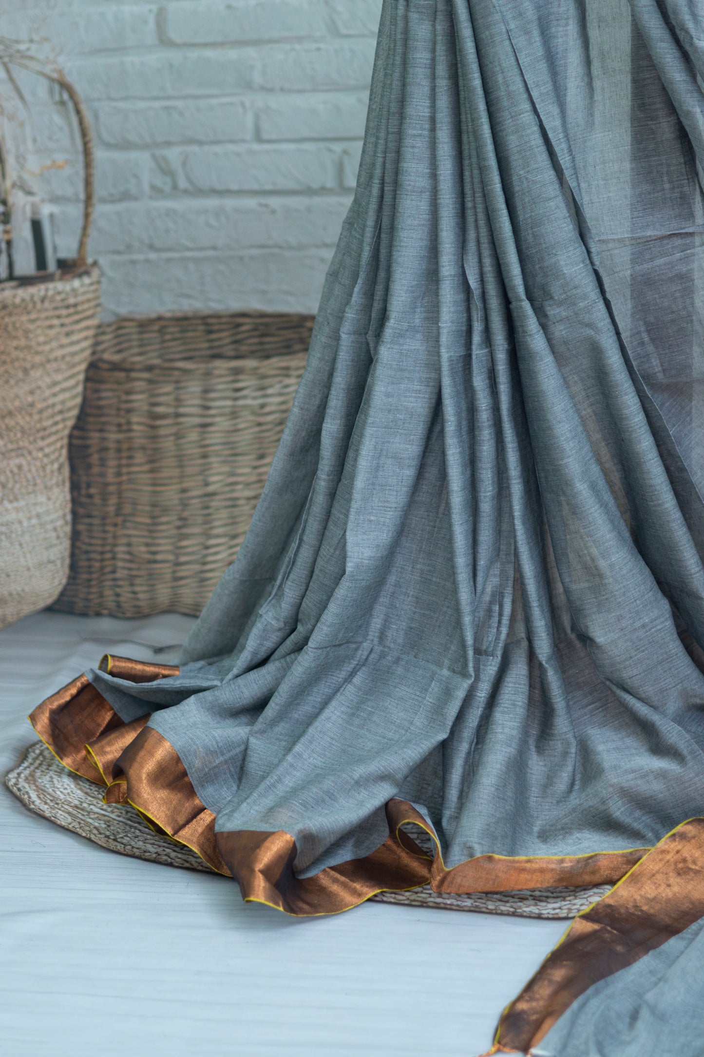 Grey Colour Mul Cotton Zari Border Saree