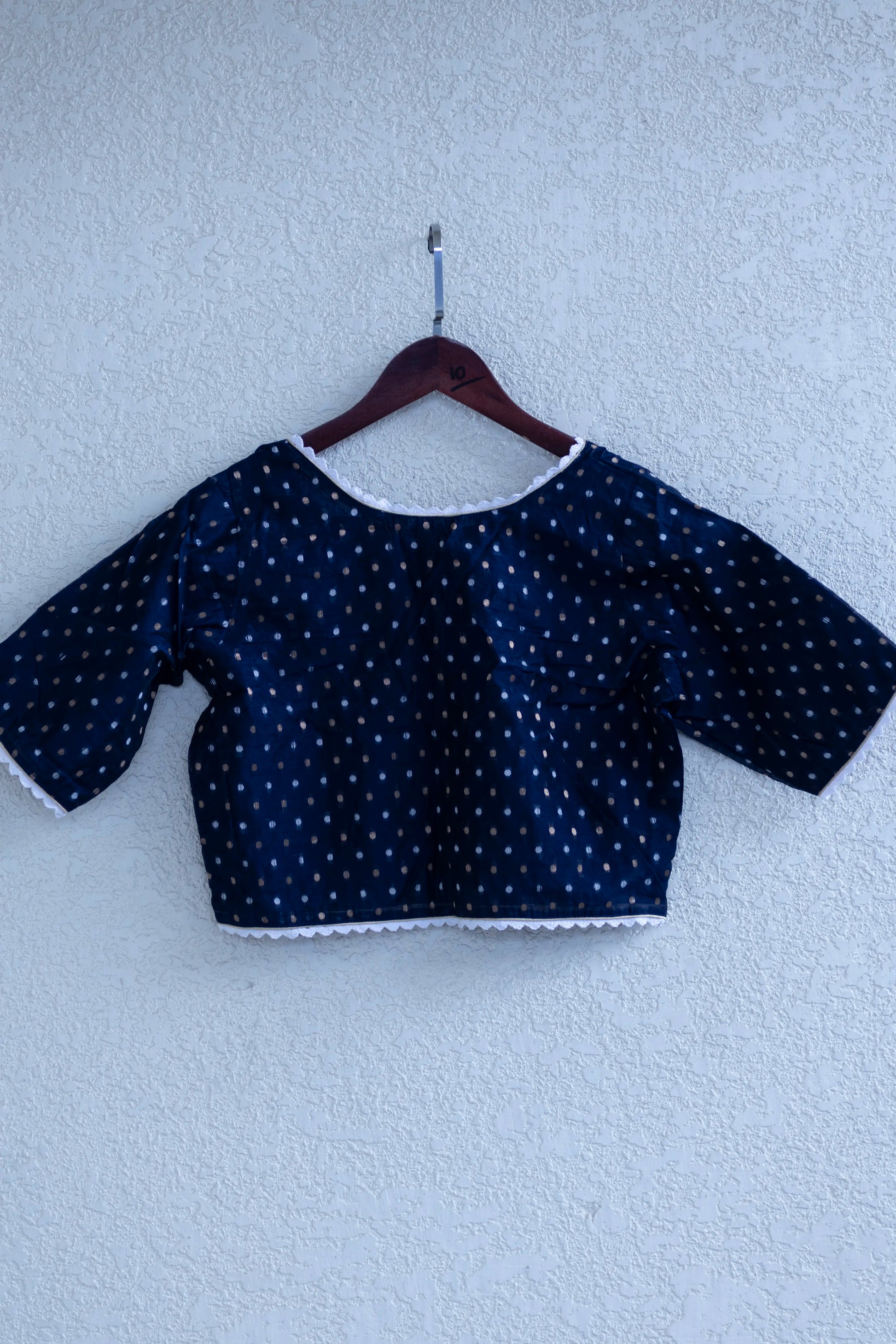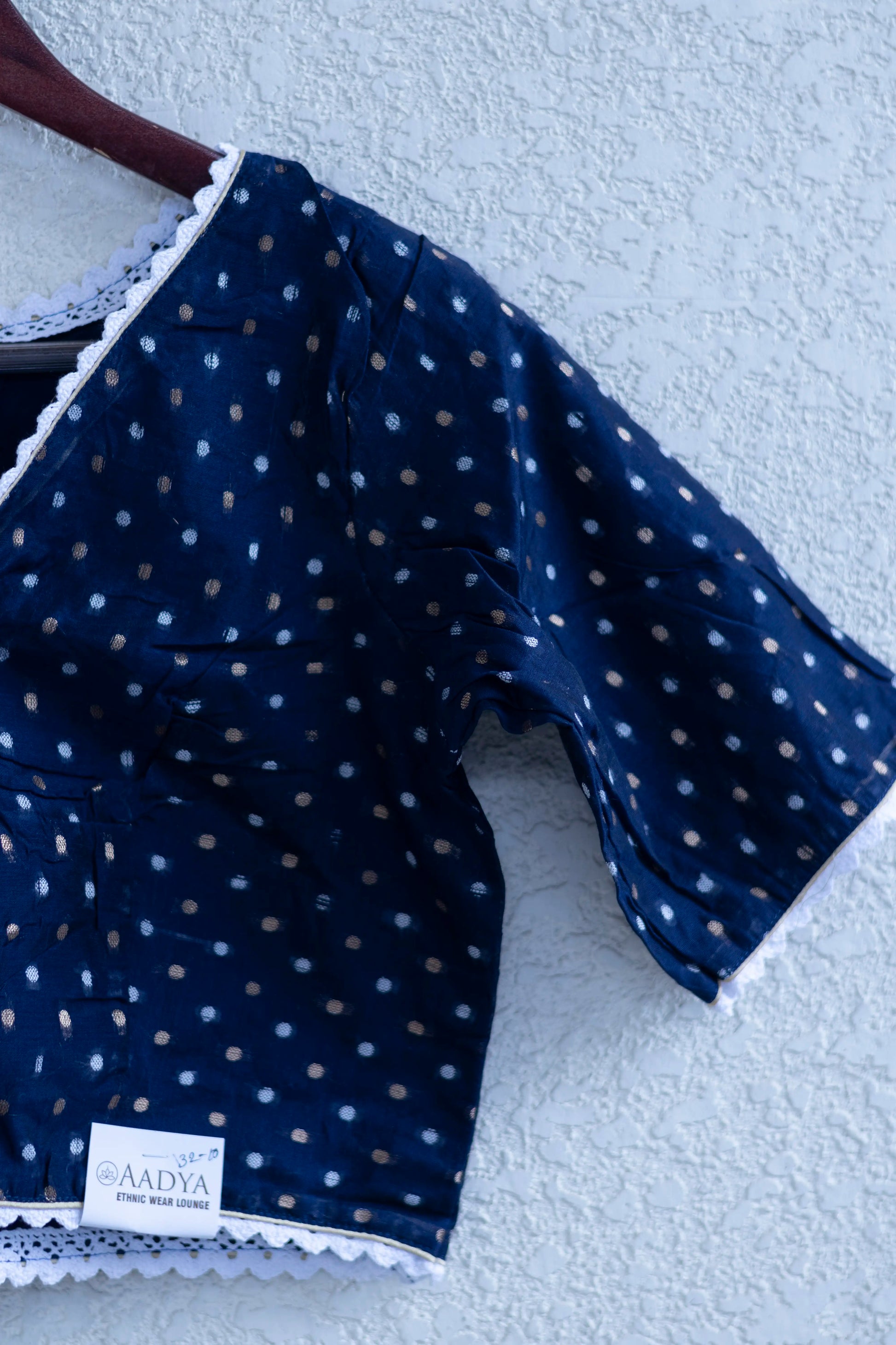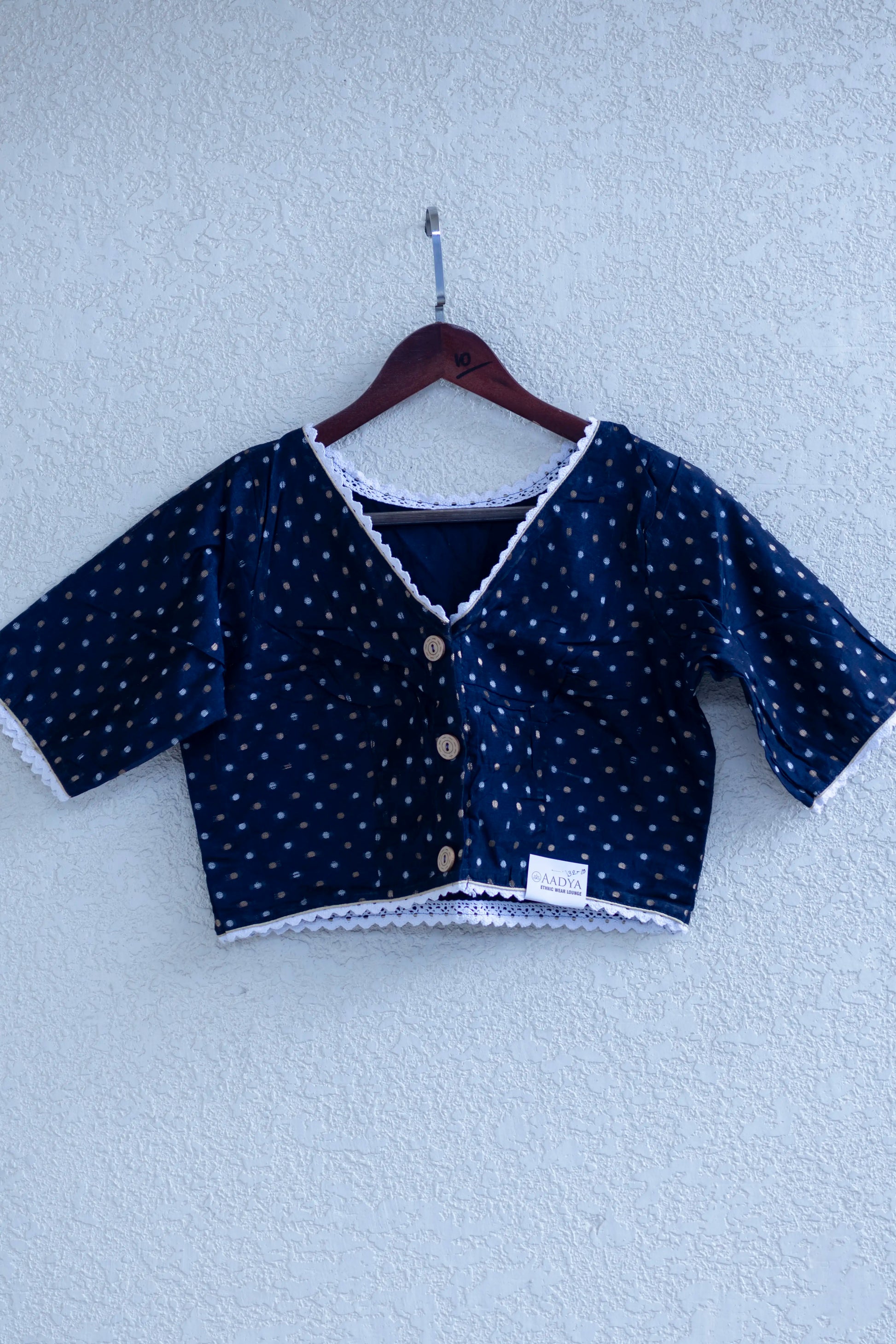 Blue V Neck Jamdani Elbow Sleeve Blouse
