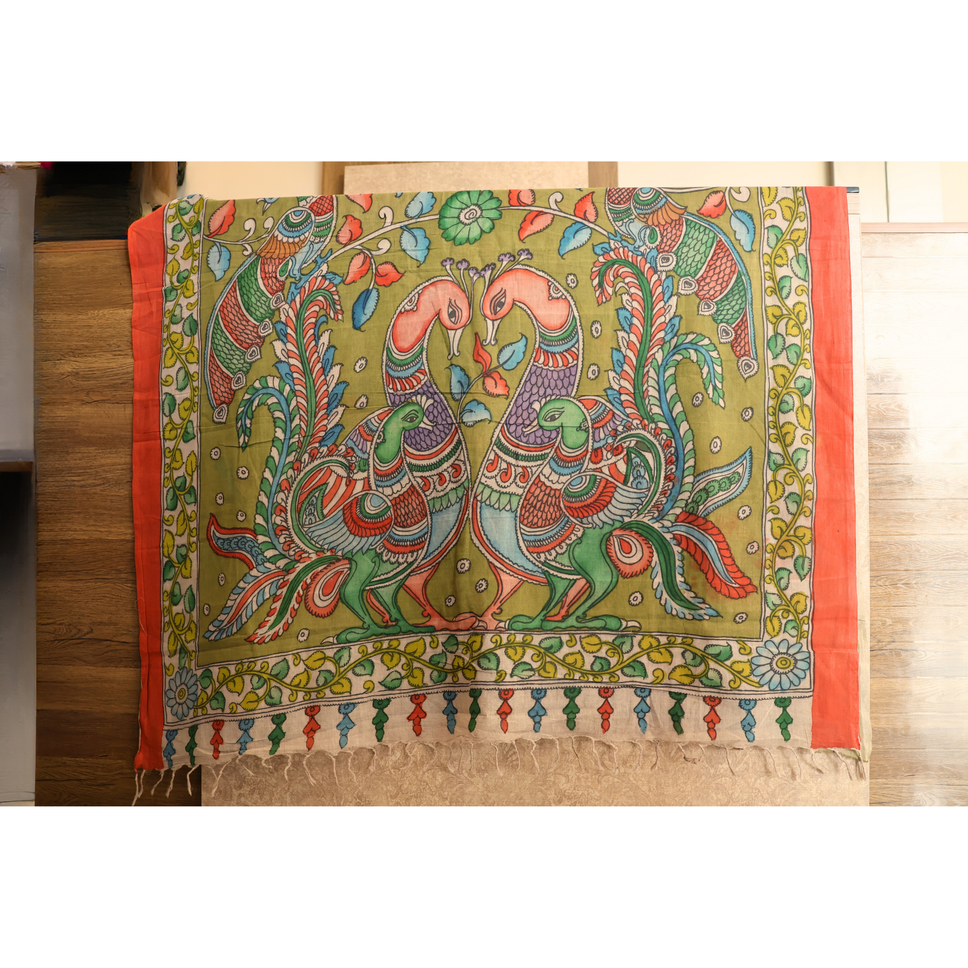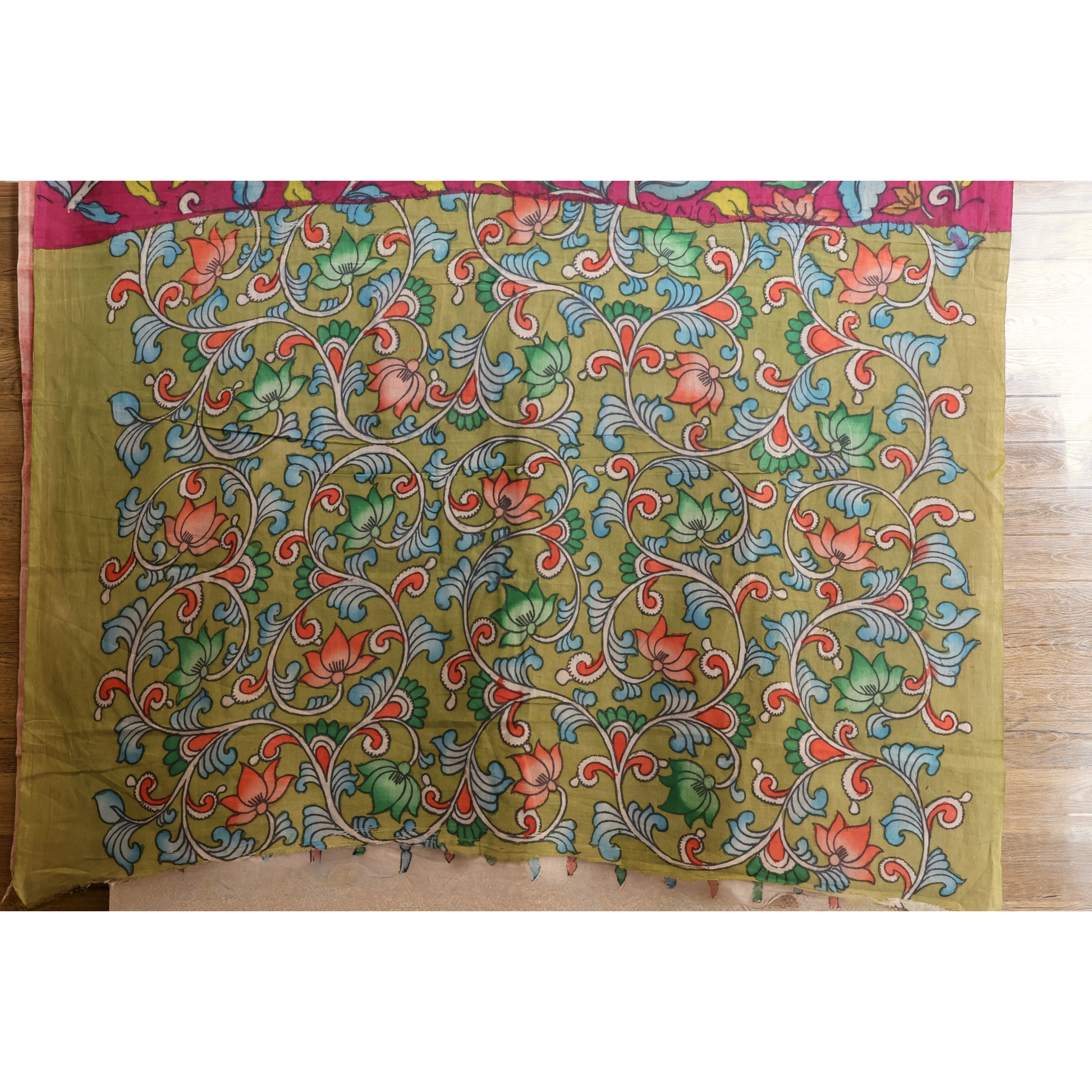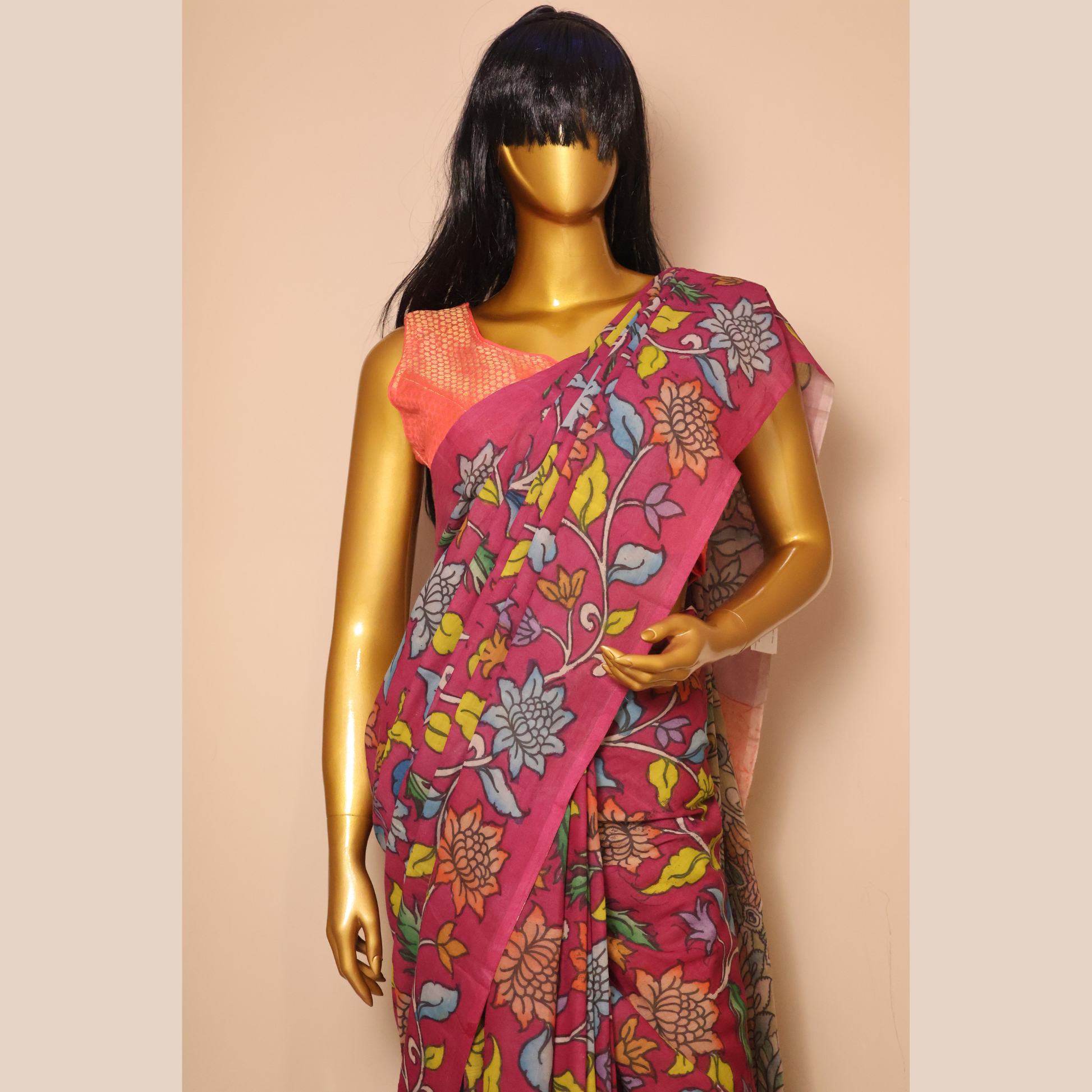 Hand Painted Pen Kalamkari Cotton Saree with floral Design