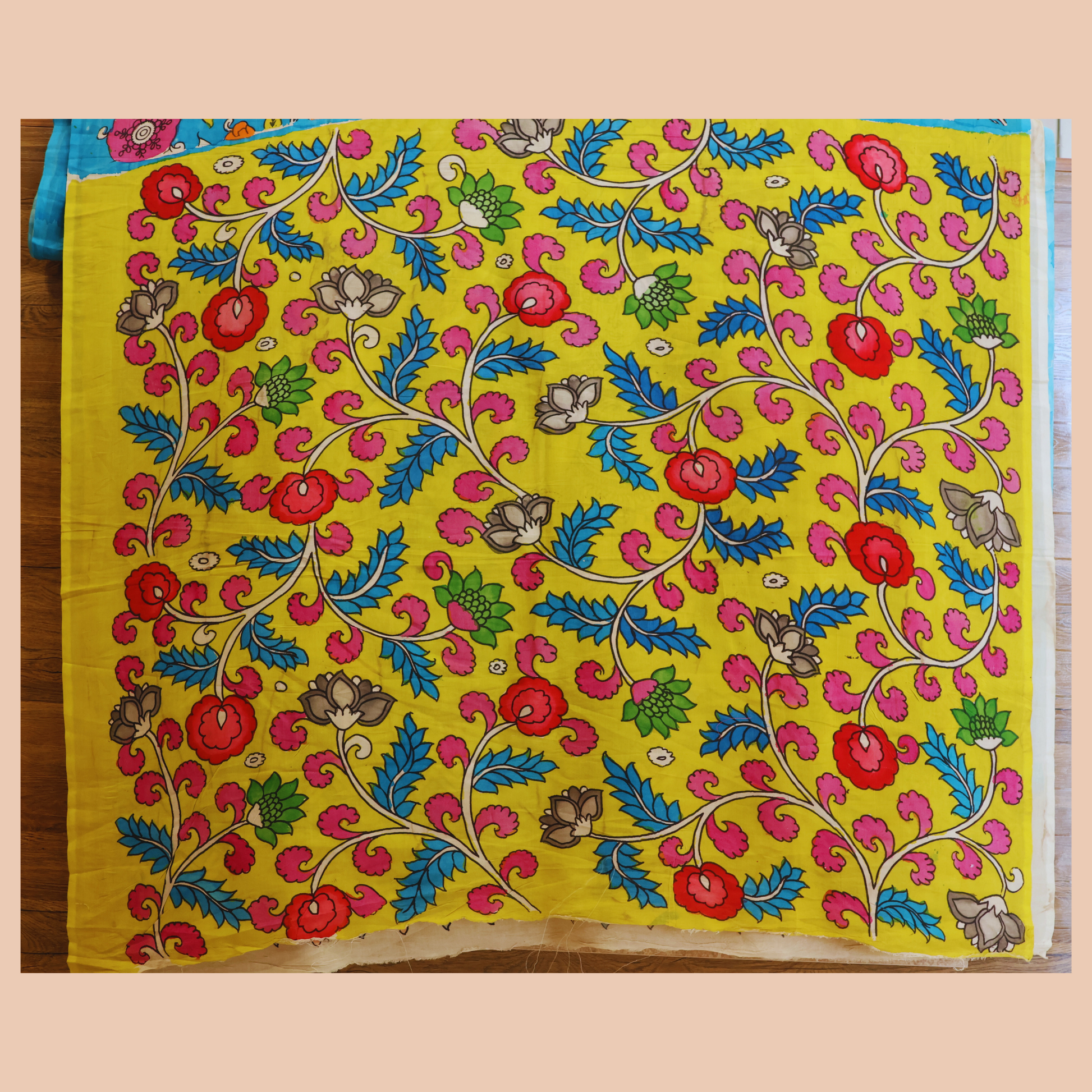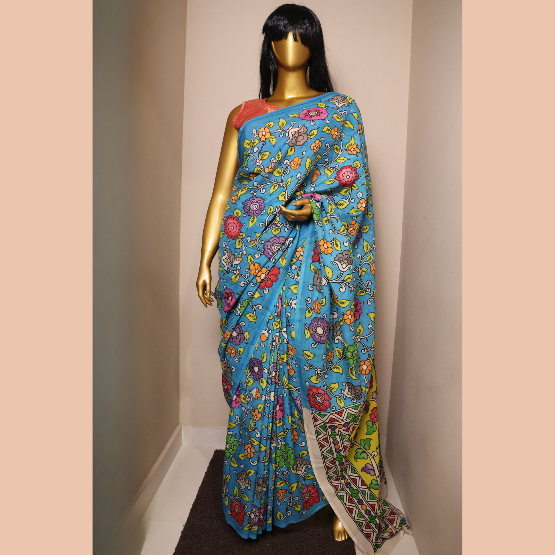 Hand Painted Pen Kalamkari Bangalore Silk borderless Saree