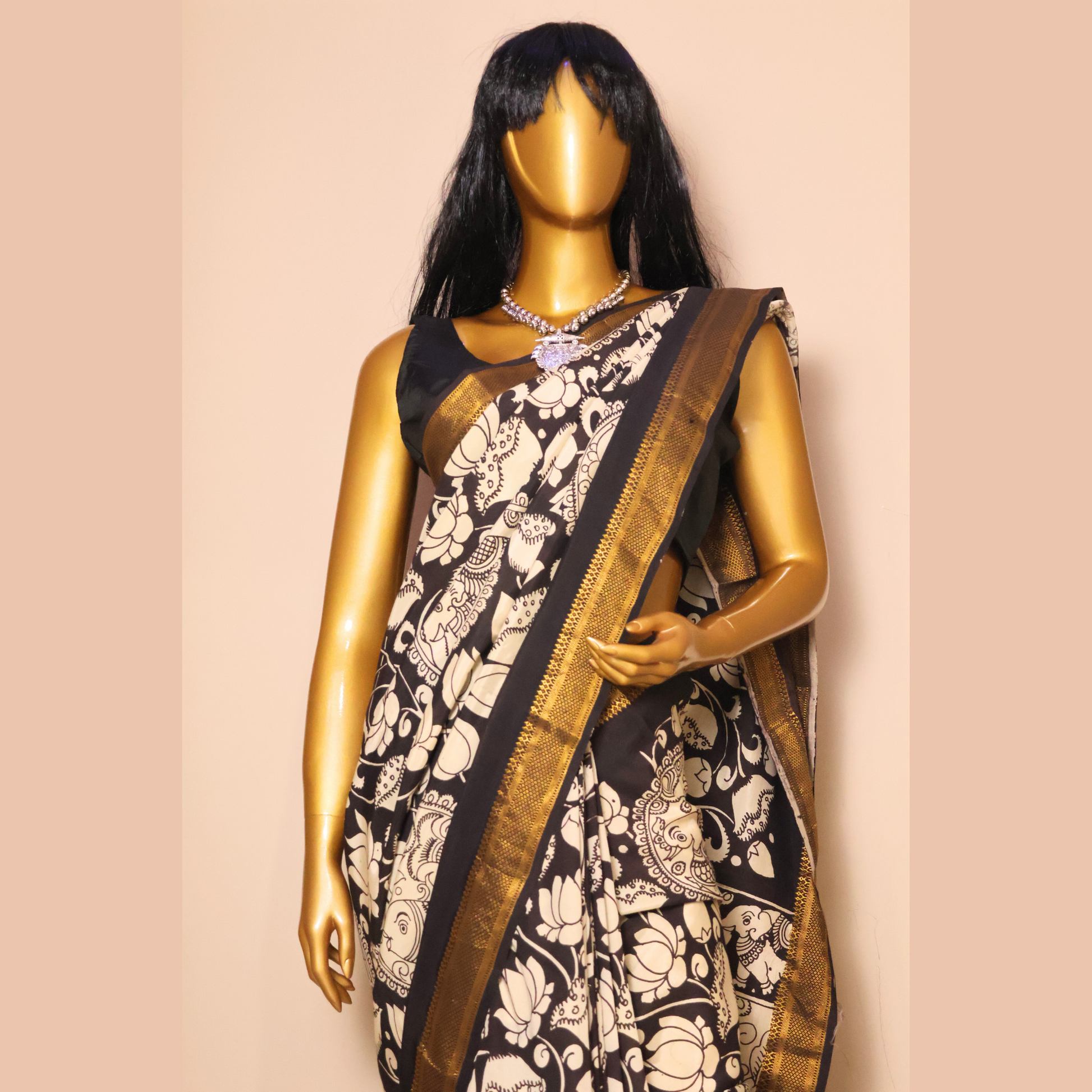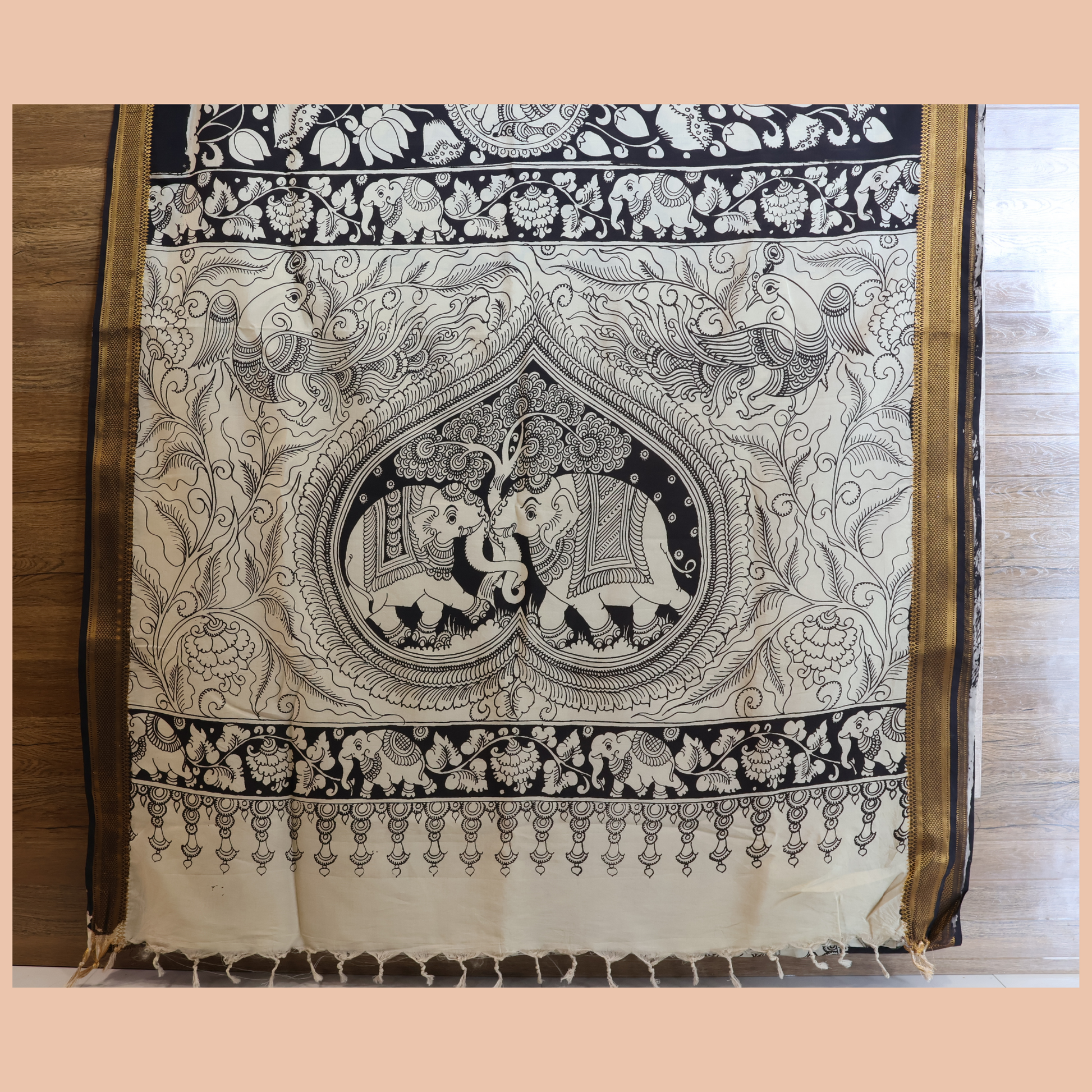 Hand Painted Pen Kalamkari Mangala Giri Silk Saree