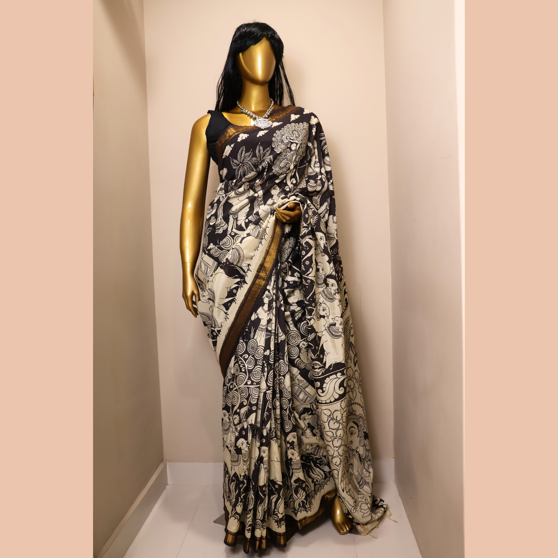Hand Painted Pen Kalamkari Mangala Giri Silk Saree
