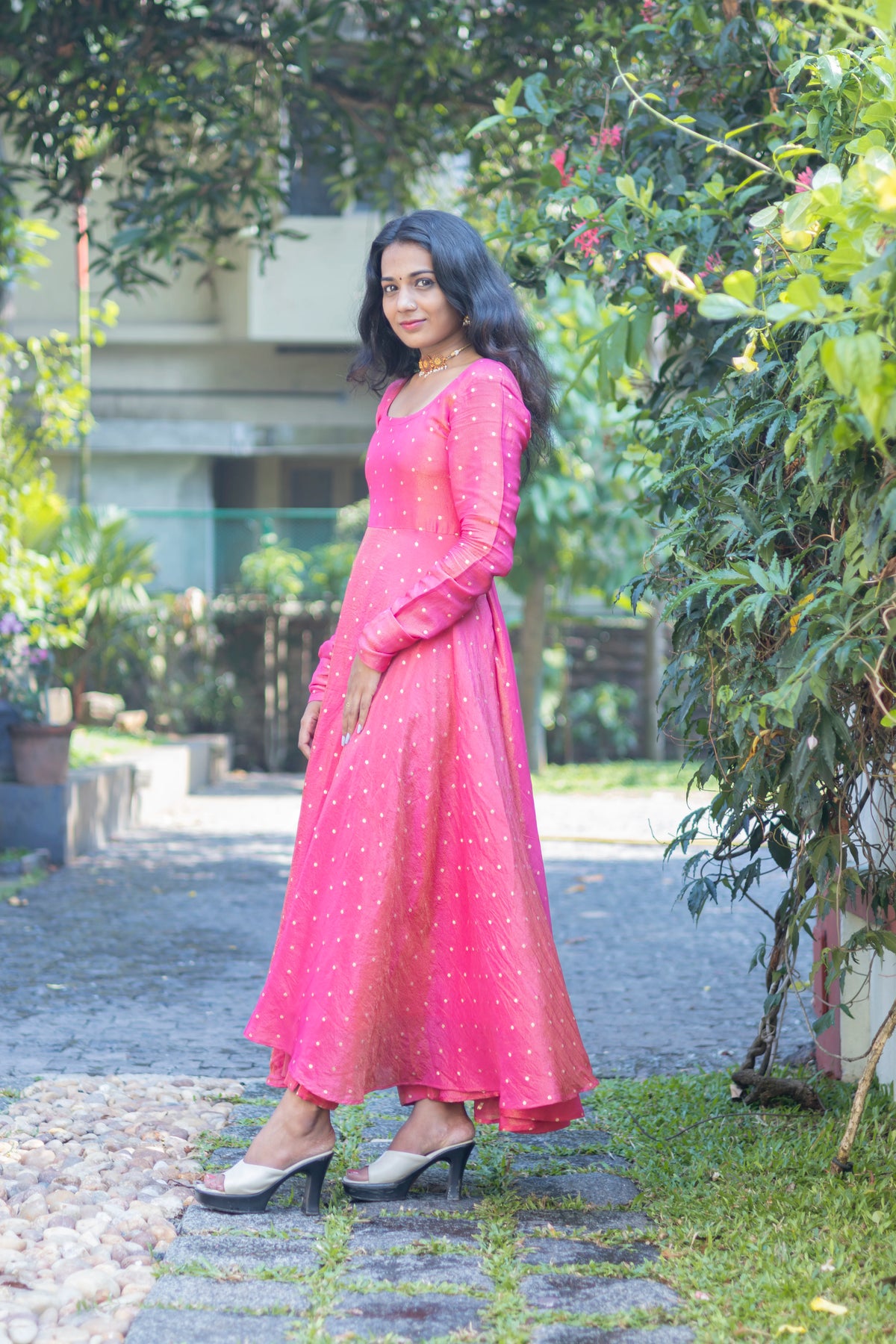 Pink Fullsleeve Umberlla Kurti