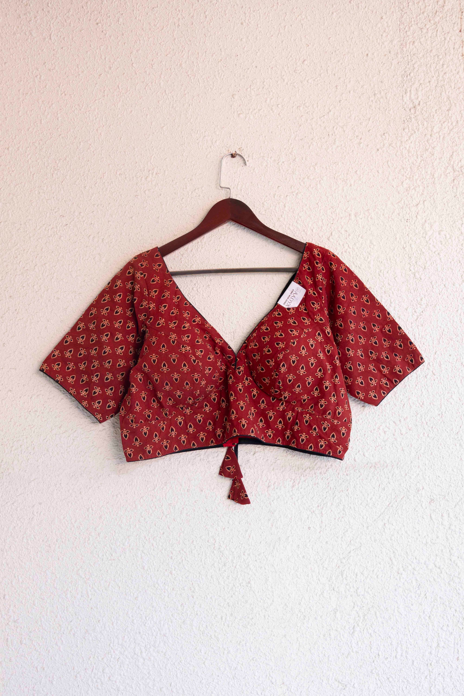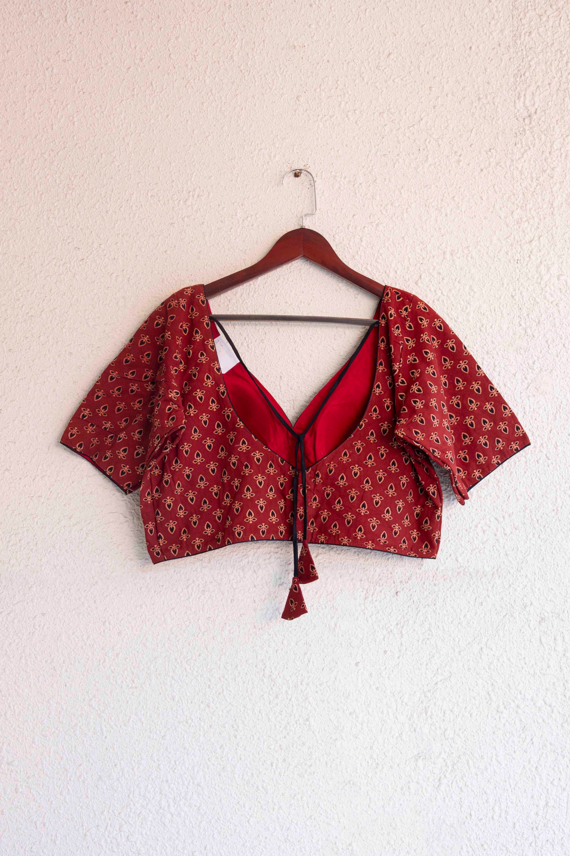Maroon Color Ajrakh Printed Padded V Neck Blouse