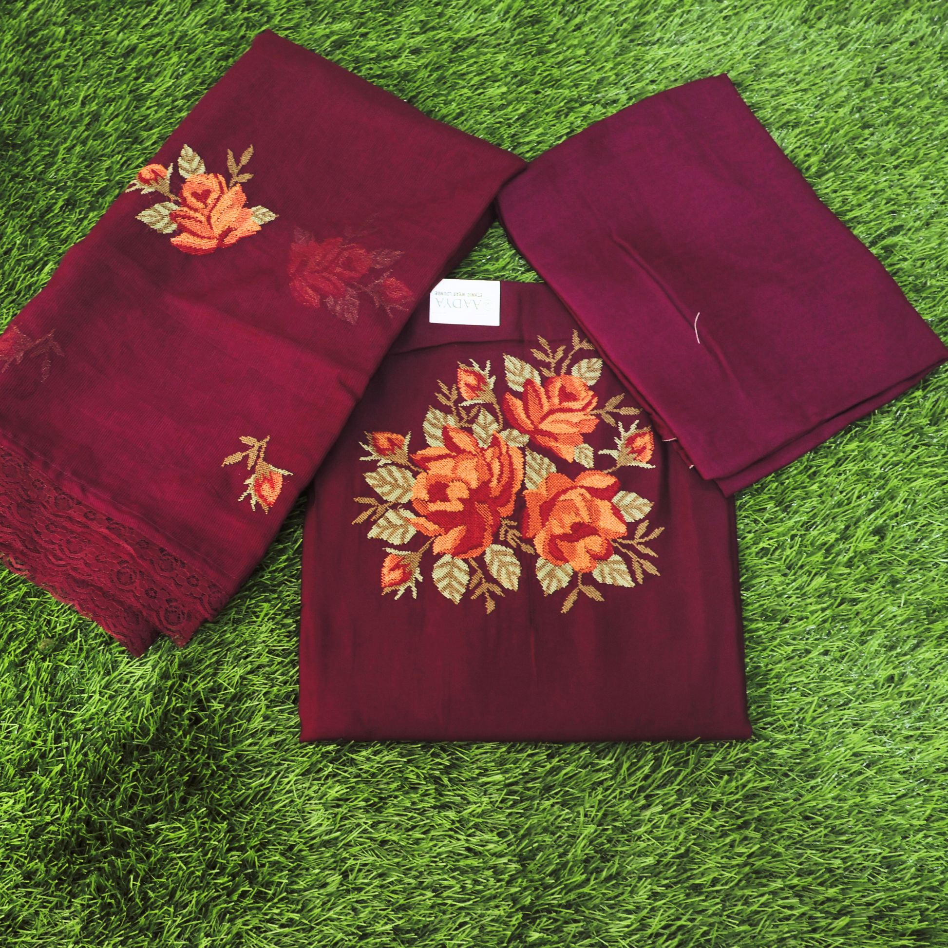 Roman Silk With Cross Stitched Salwar Set