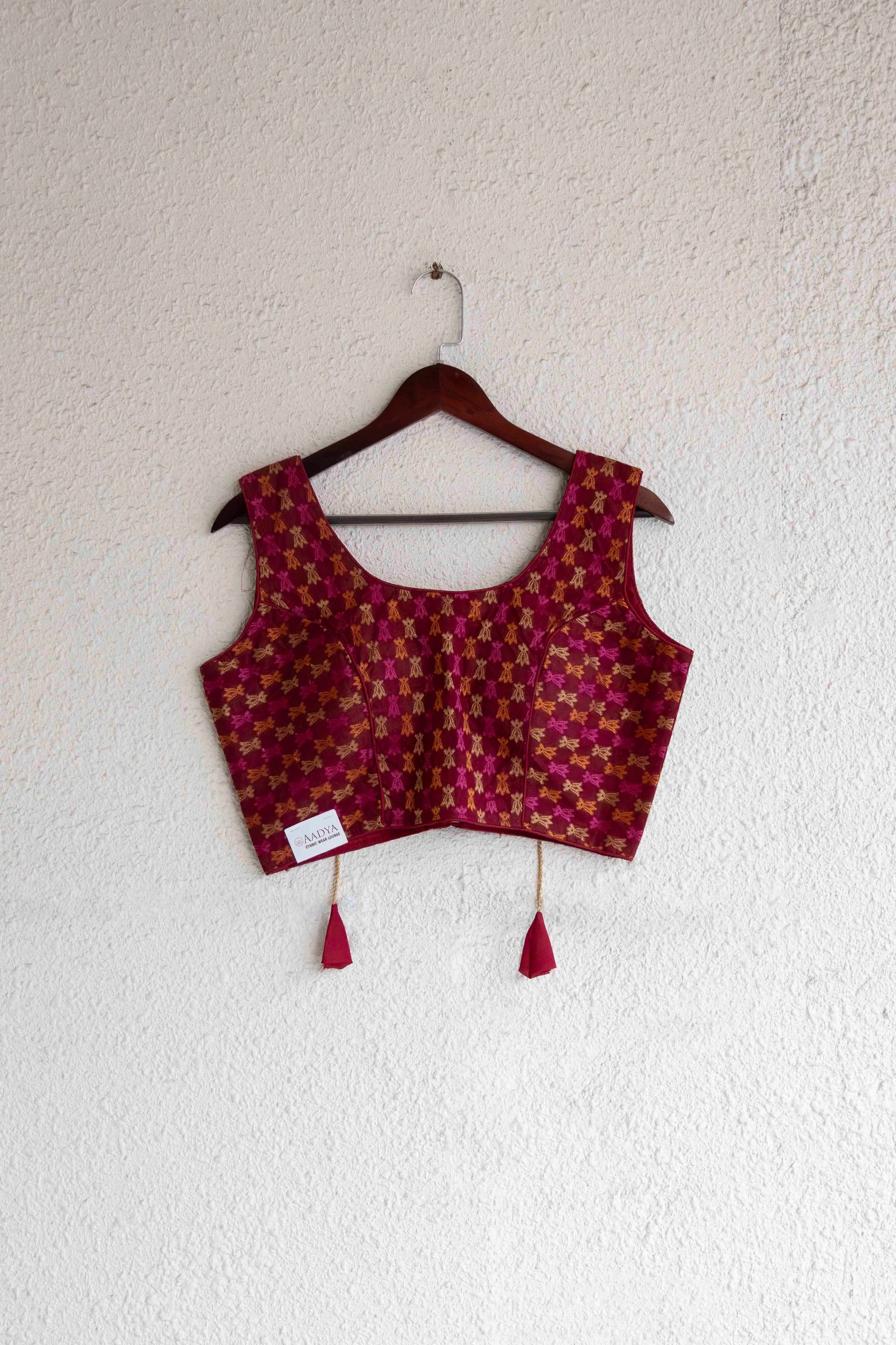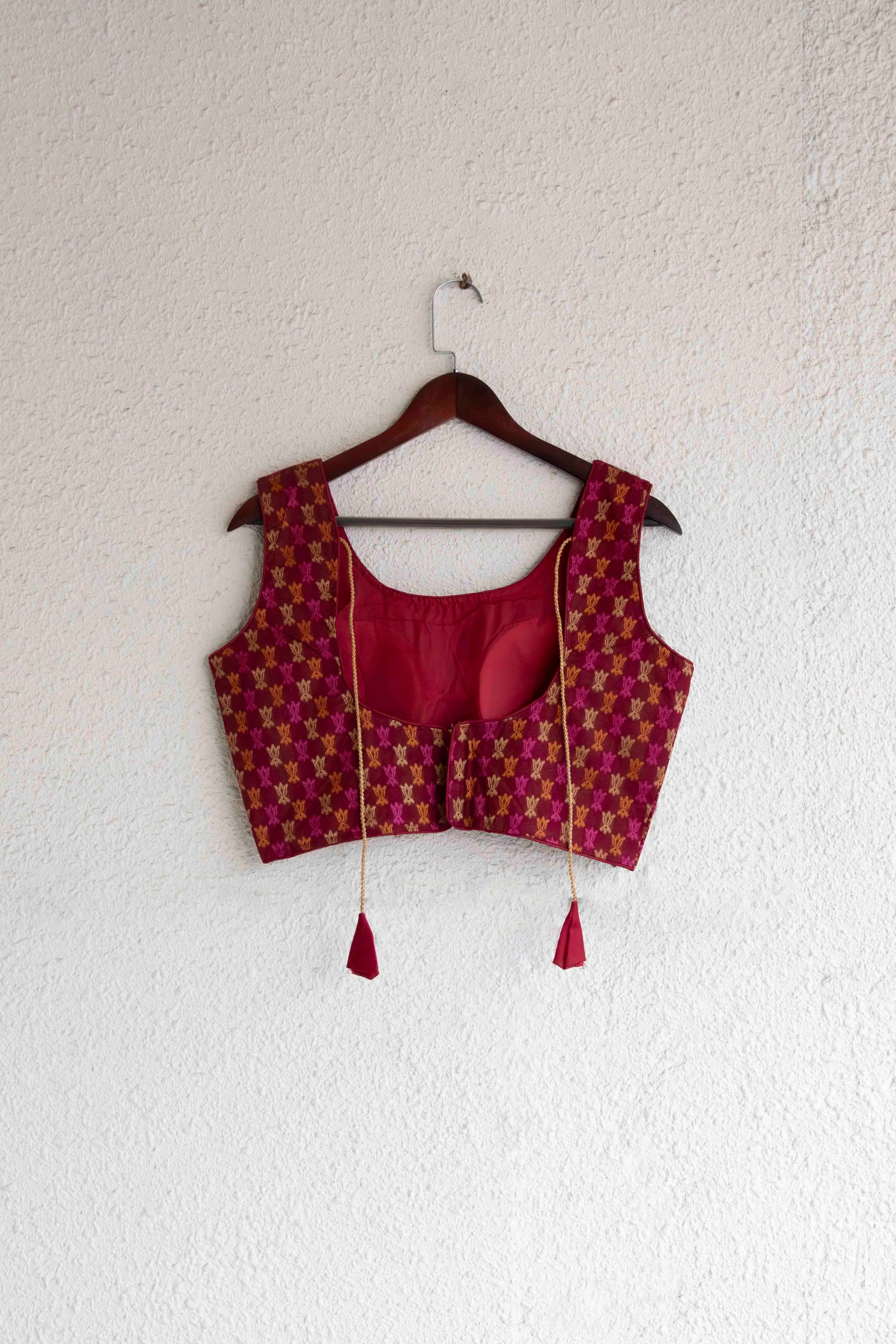 Maroon Silk Back Open Blouse