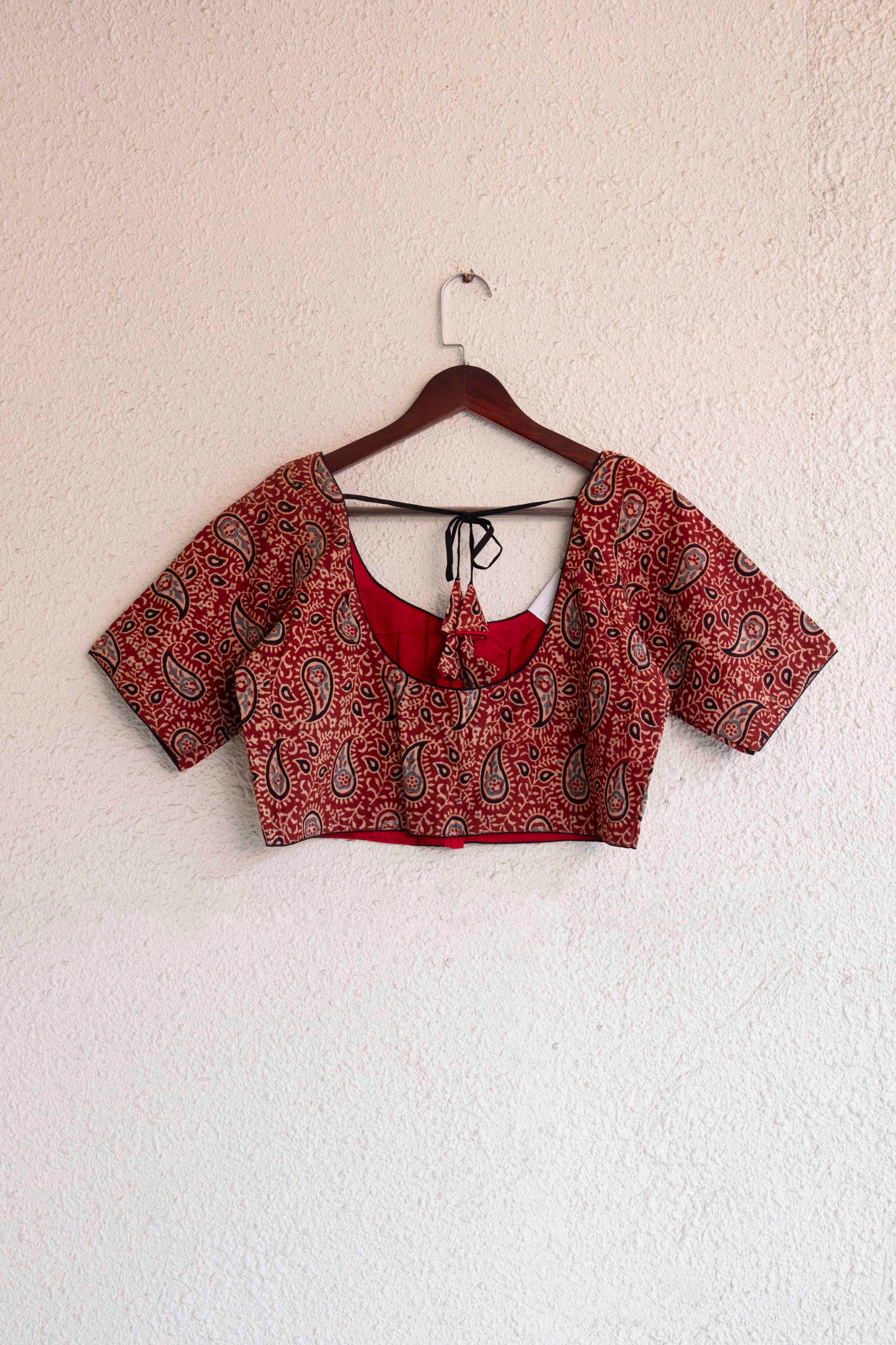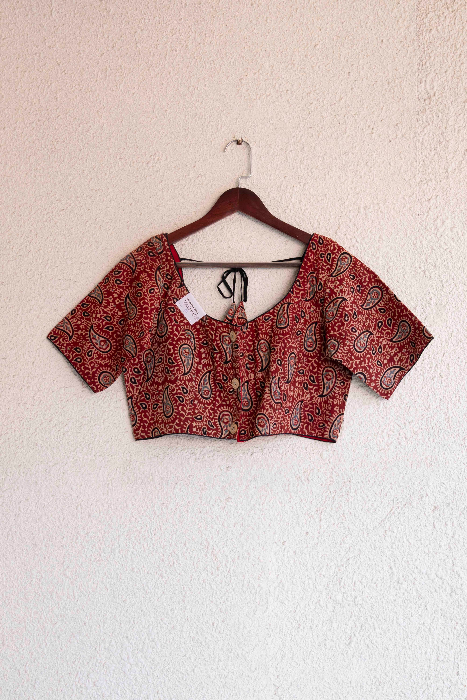 Red Color Round Neck Ajrakh Printed Blouse