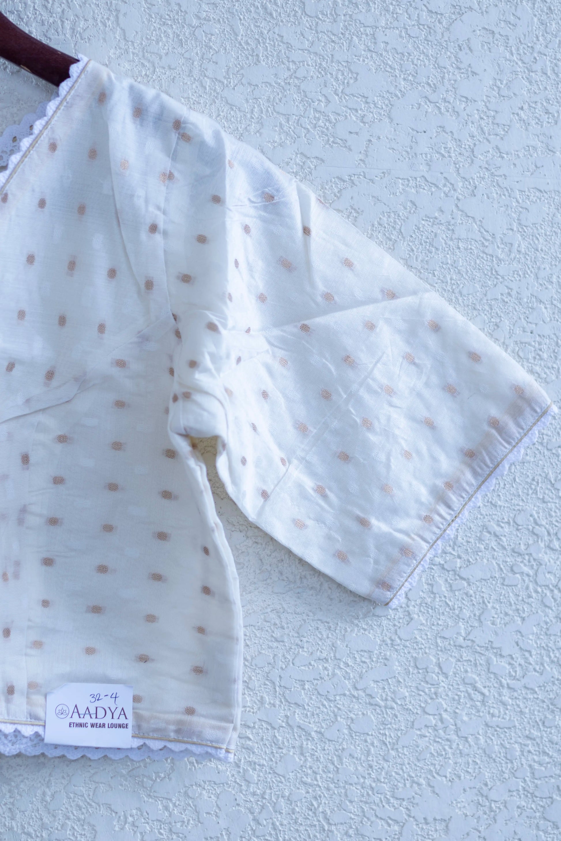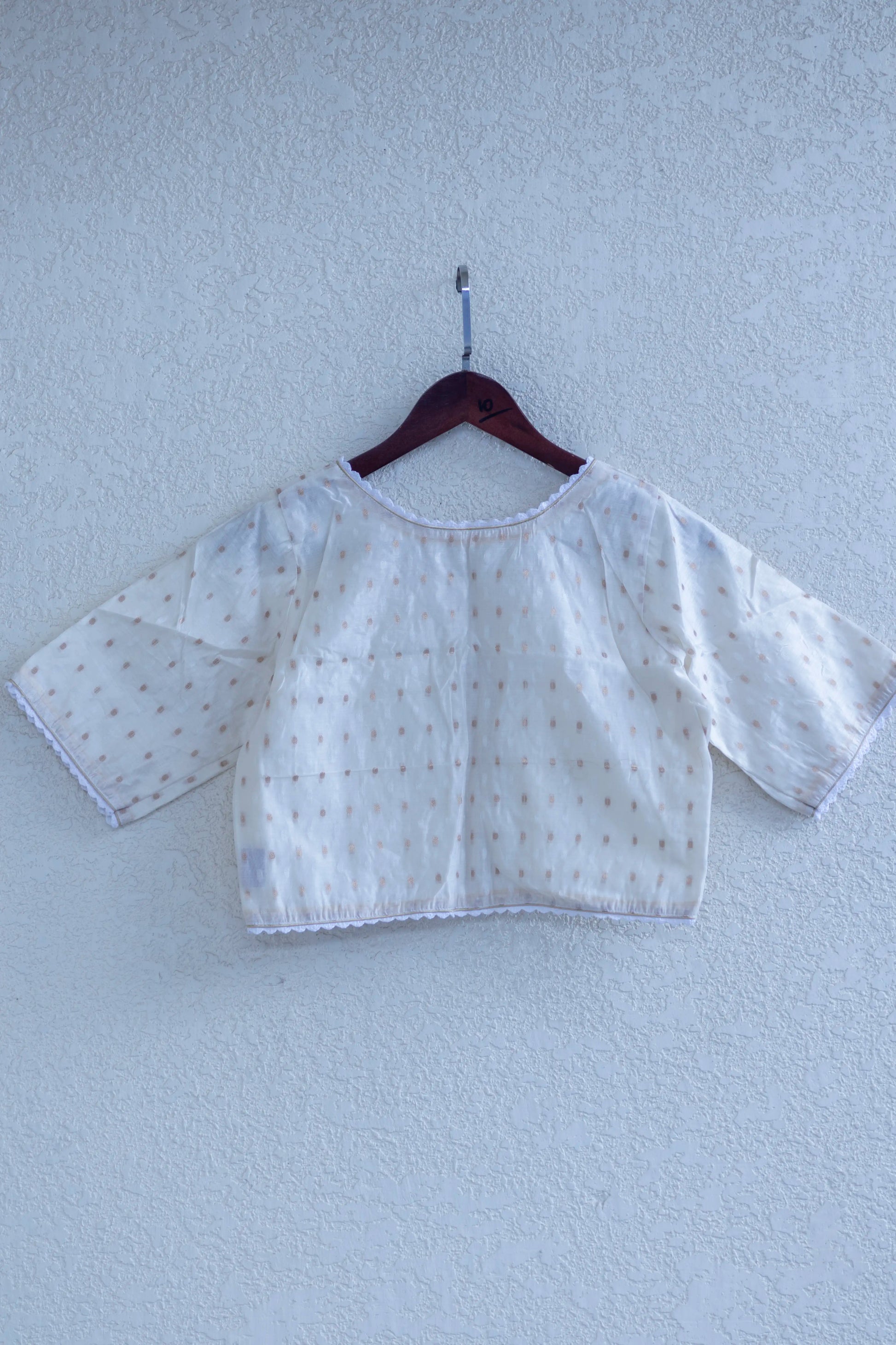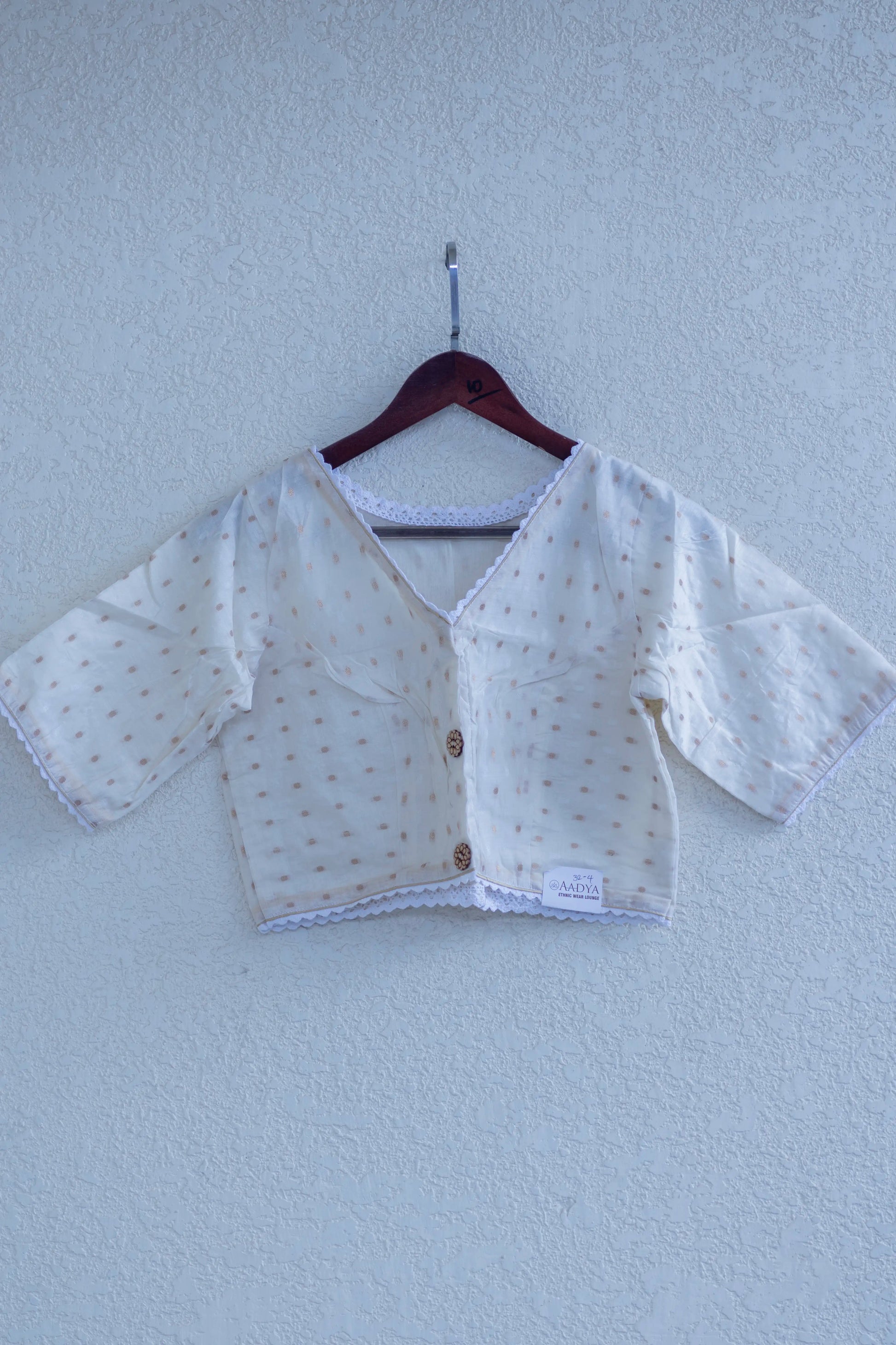 Off White V Neck Jamdani Elbow Sleeve Blouse
