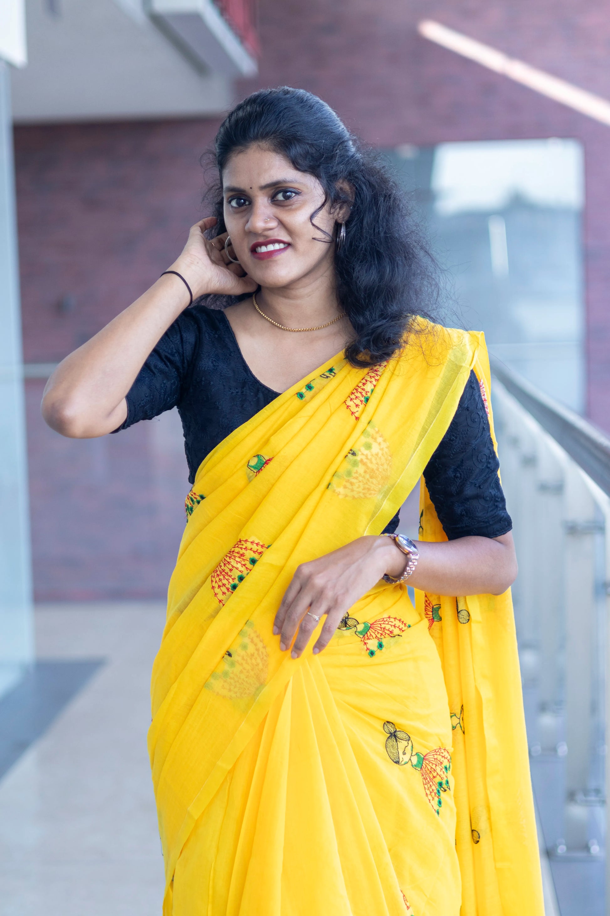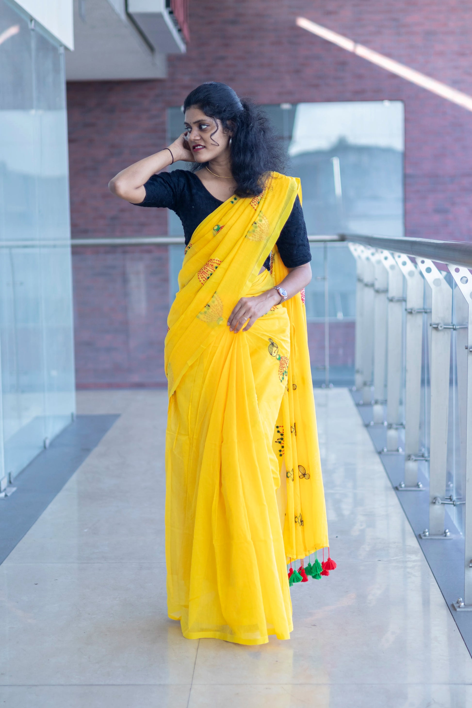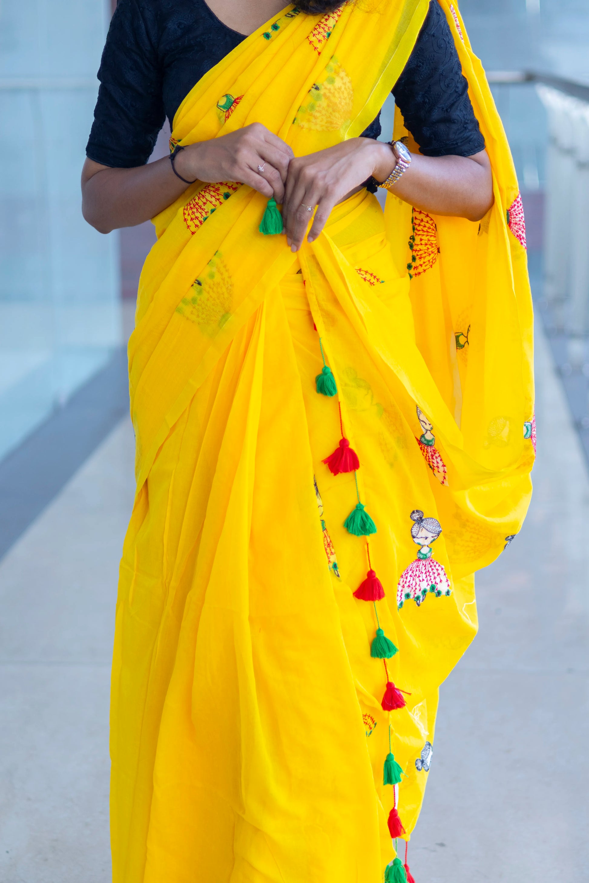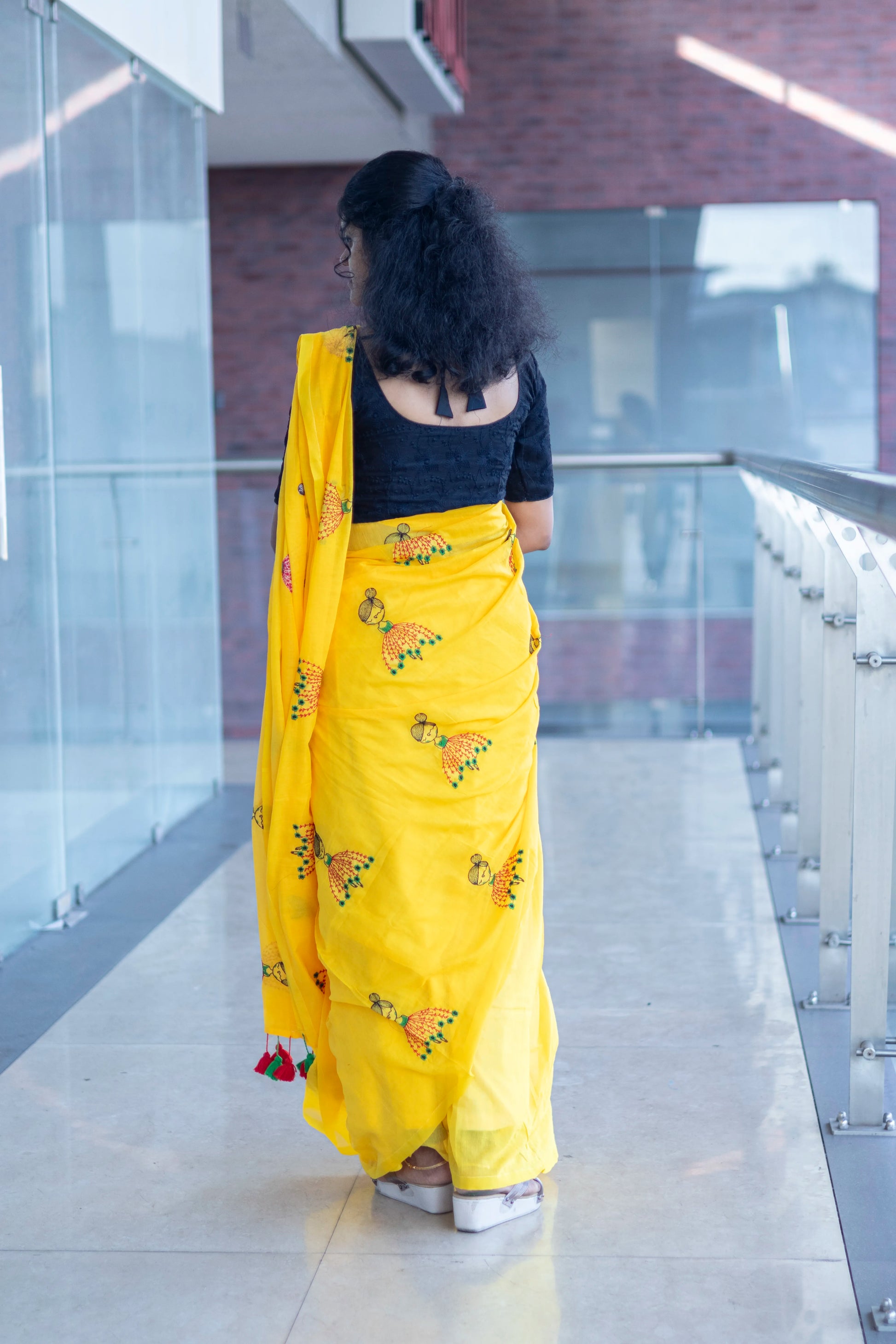 Yellow Color Mul cotton saree with Doll Embroidery