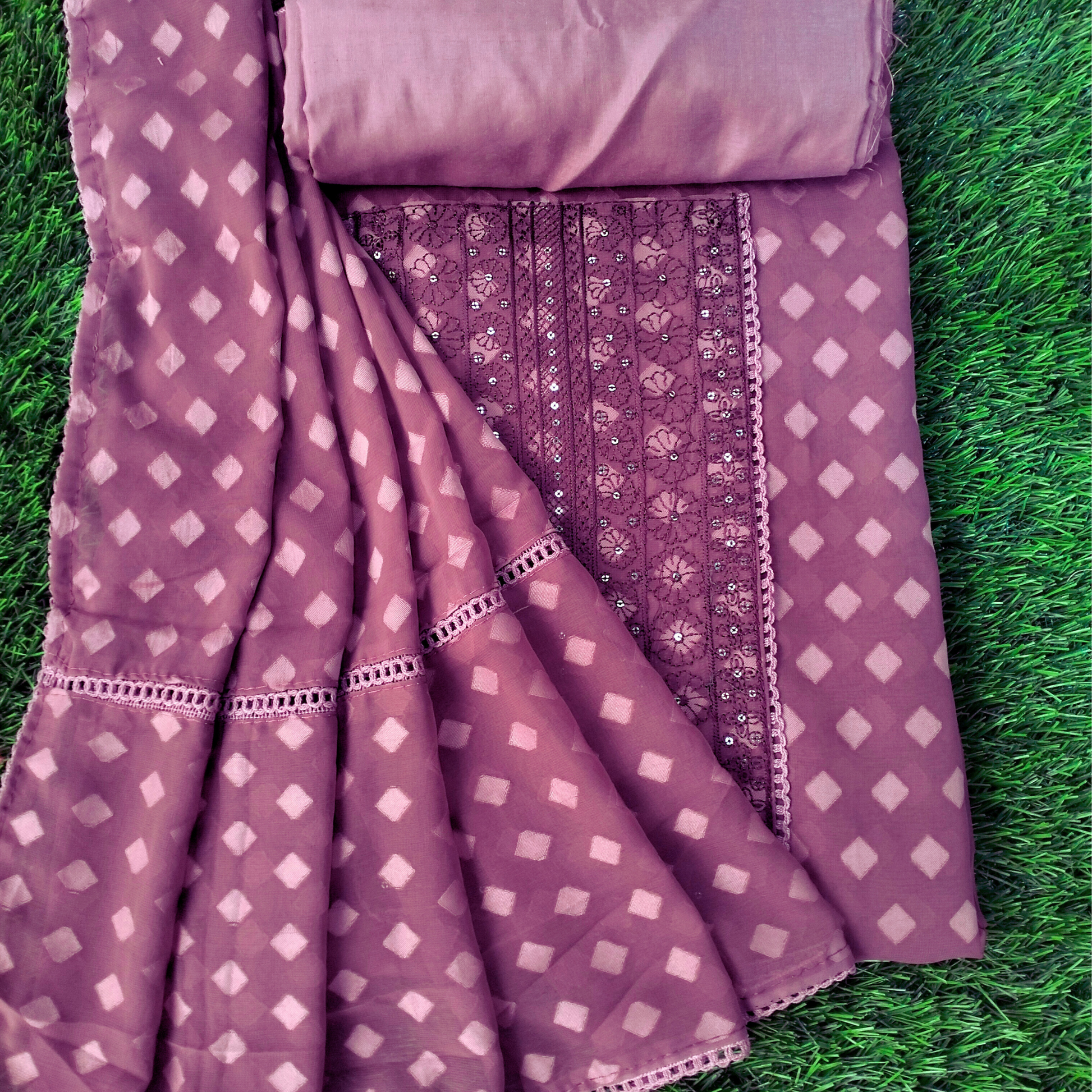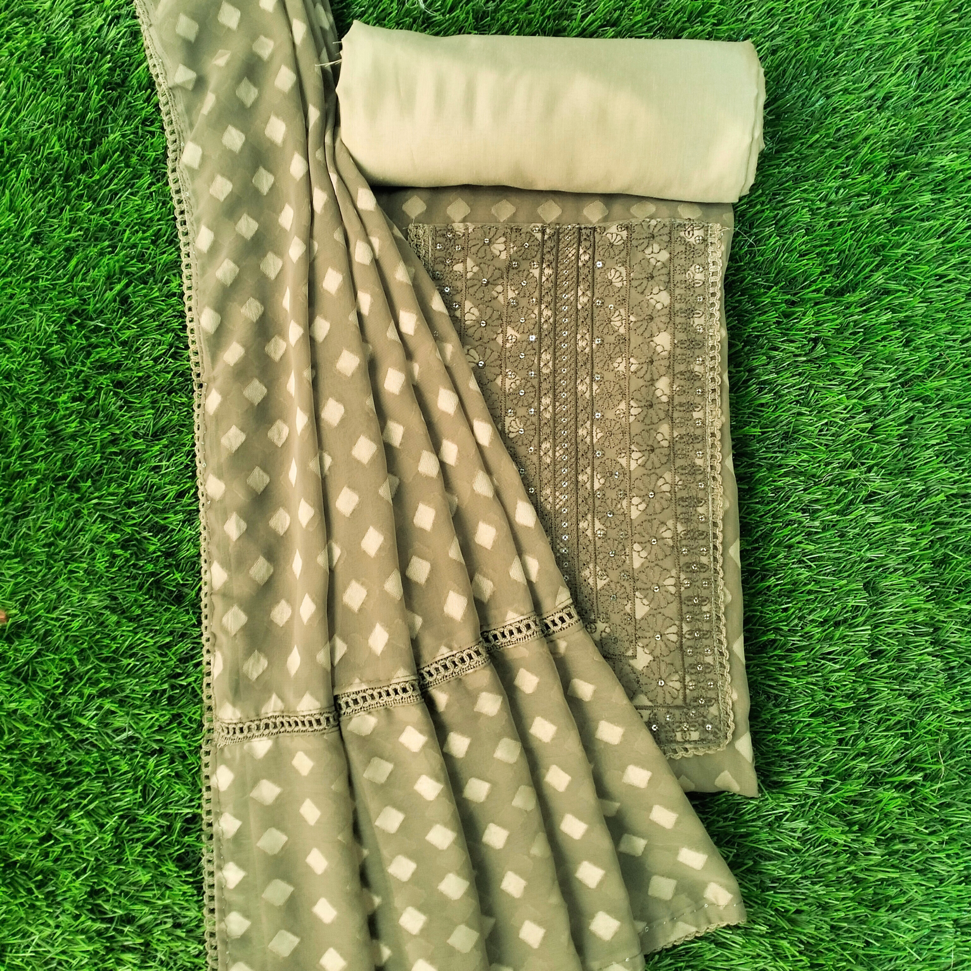 Fox georgette diamond motif and yoke highlighted salwar suit