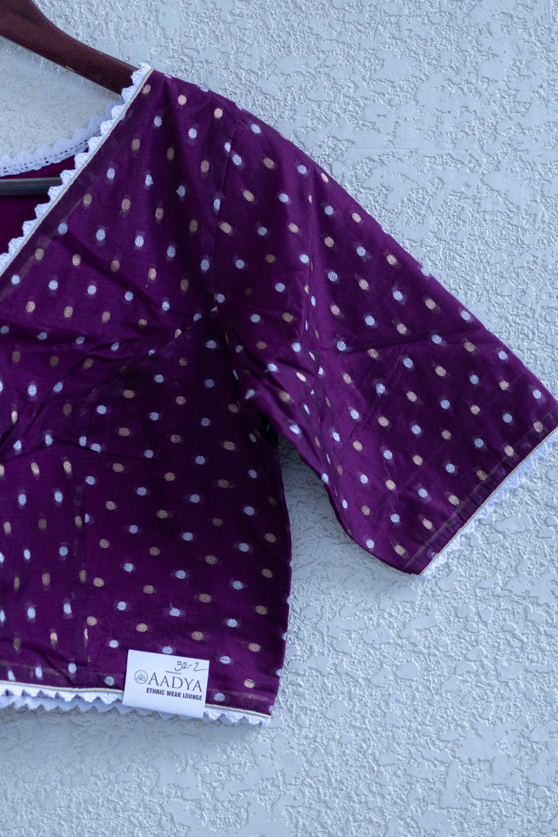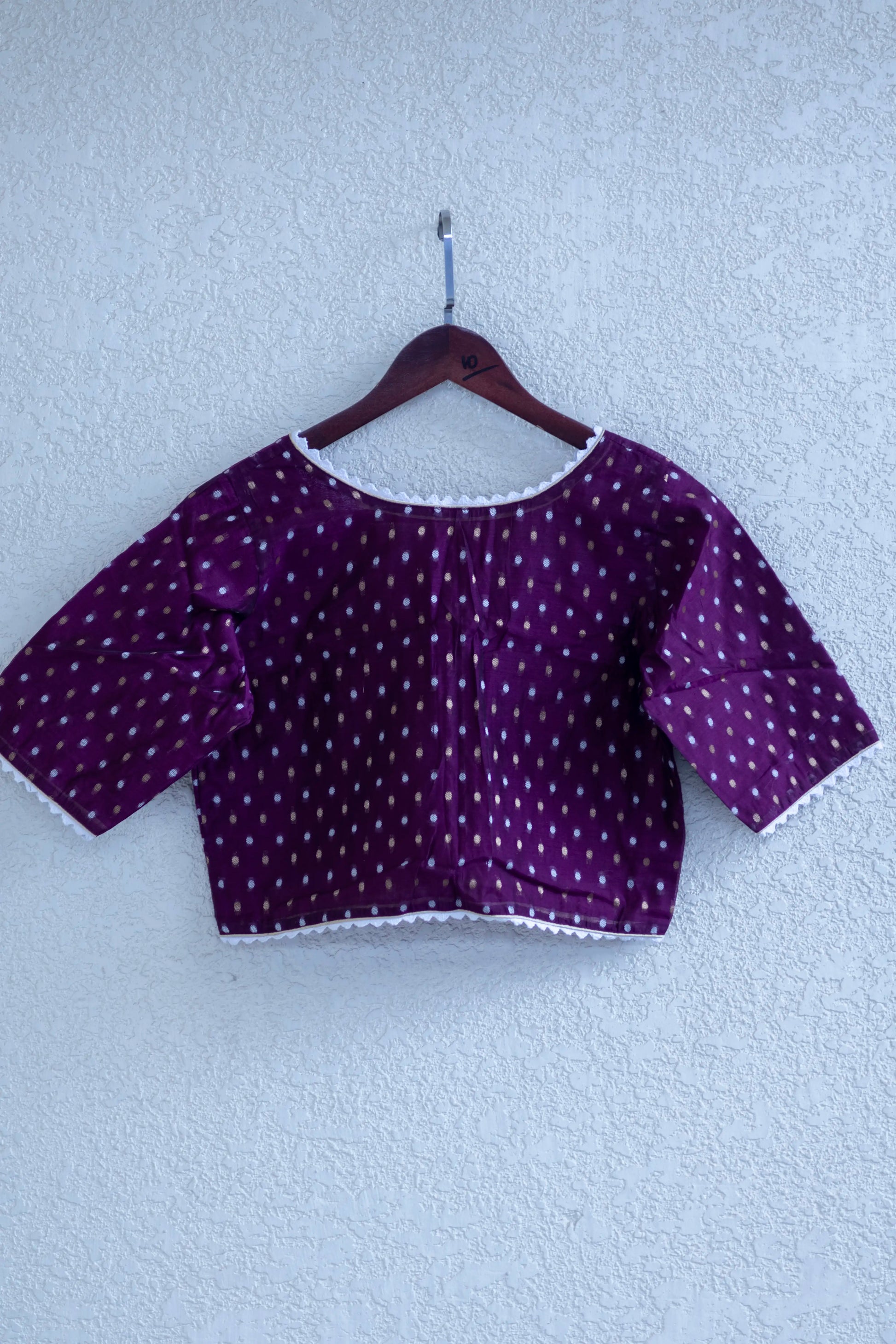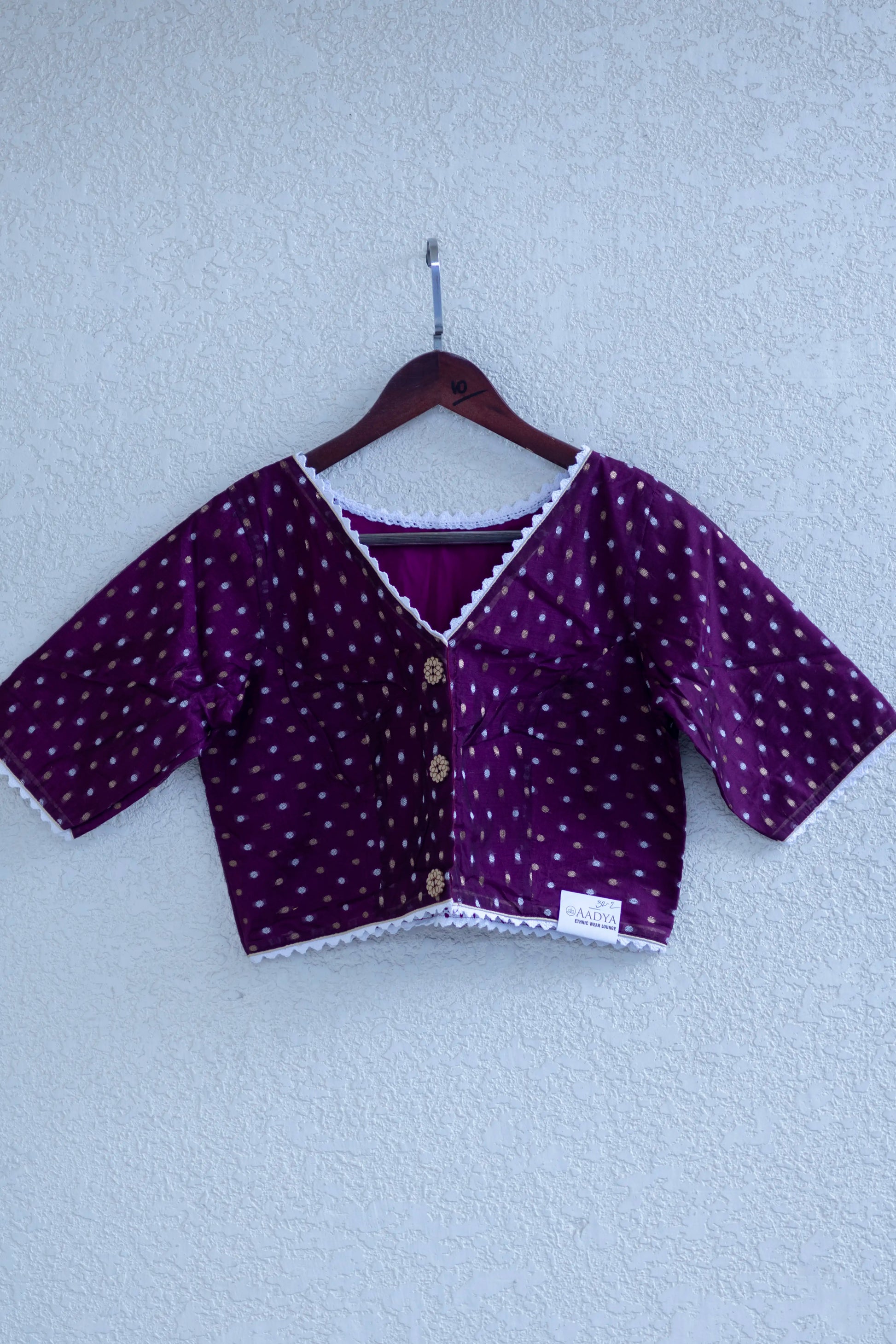 Purple V Neck Jamdani Elbow Sleeve Blouse