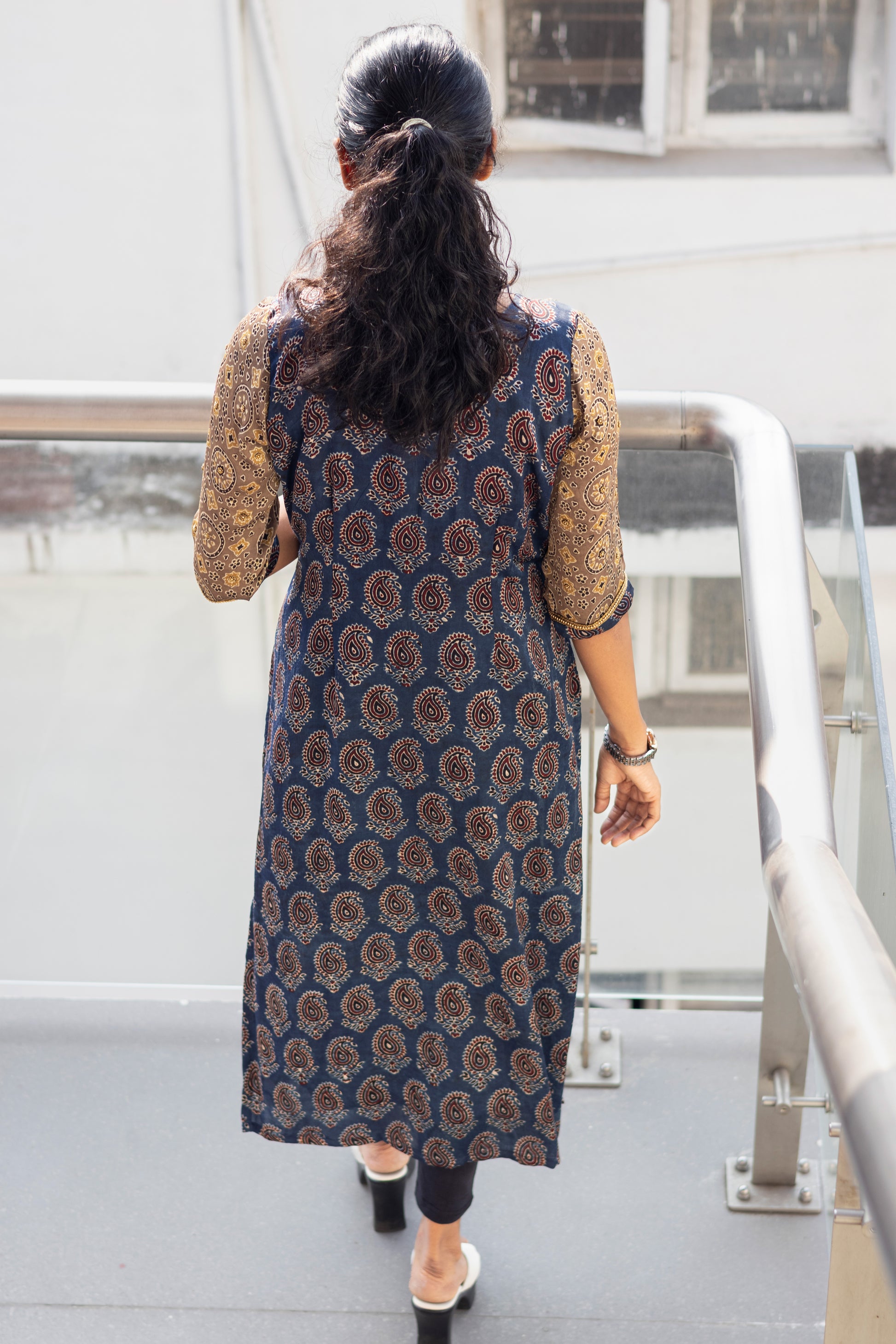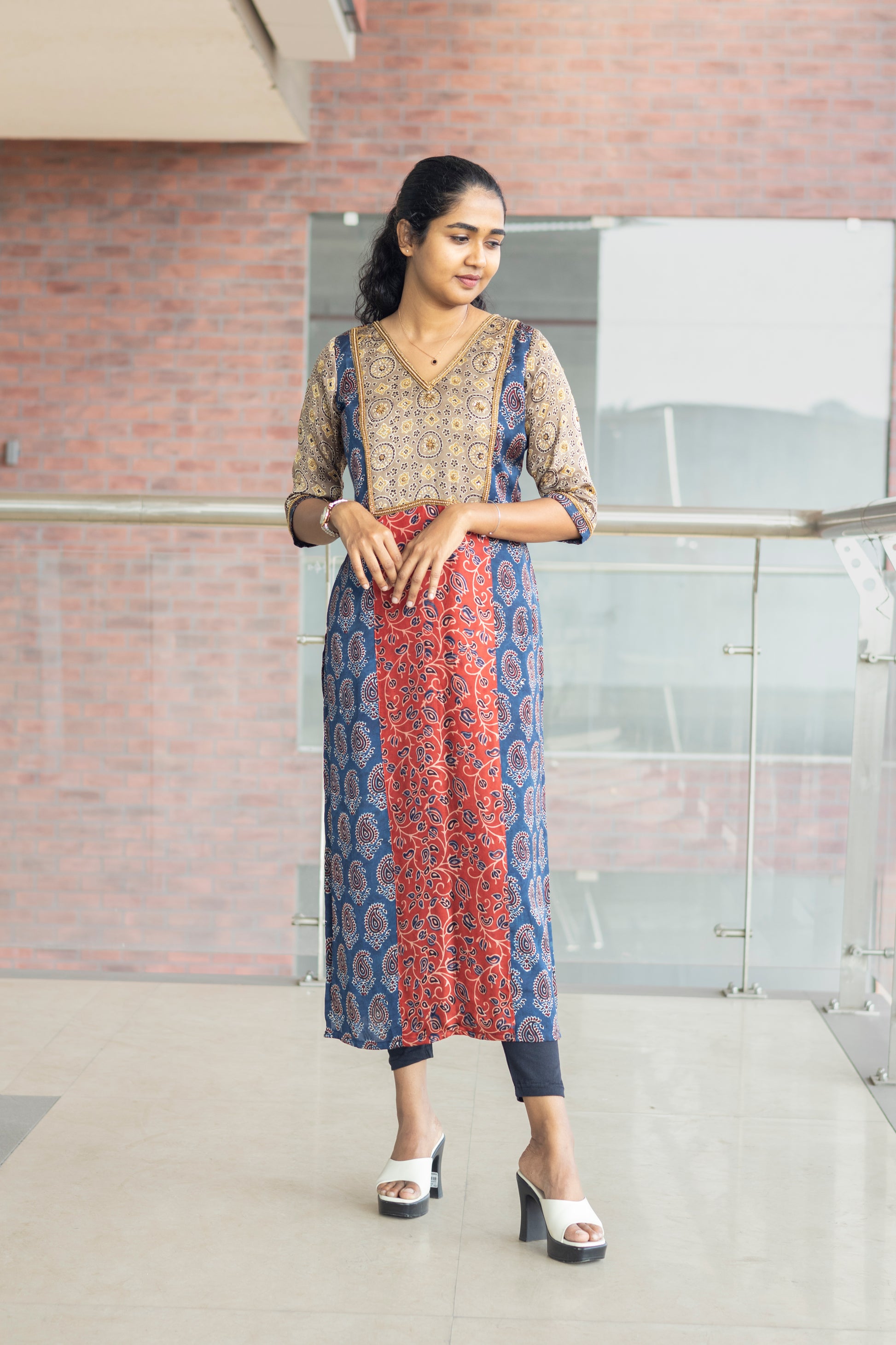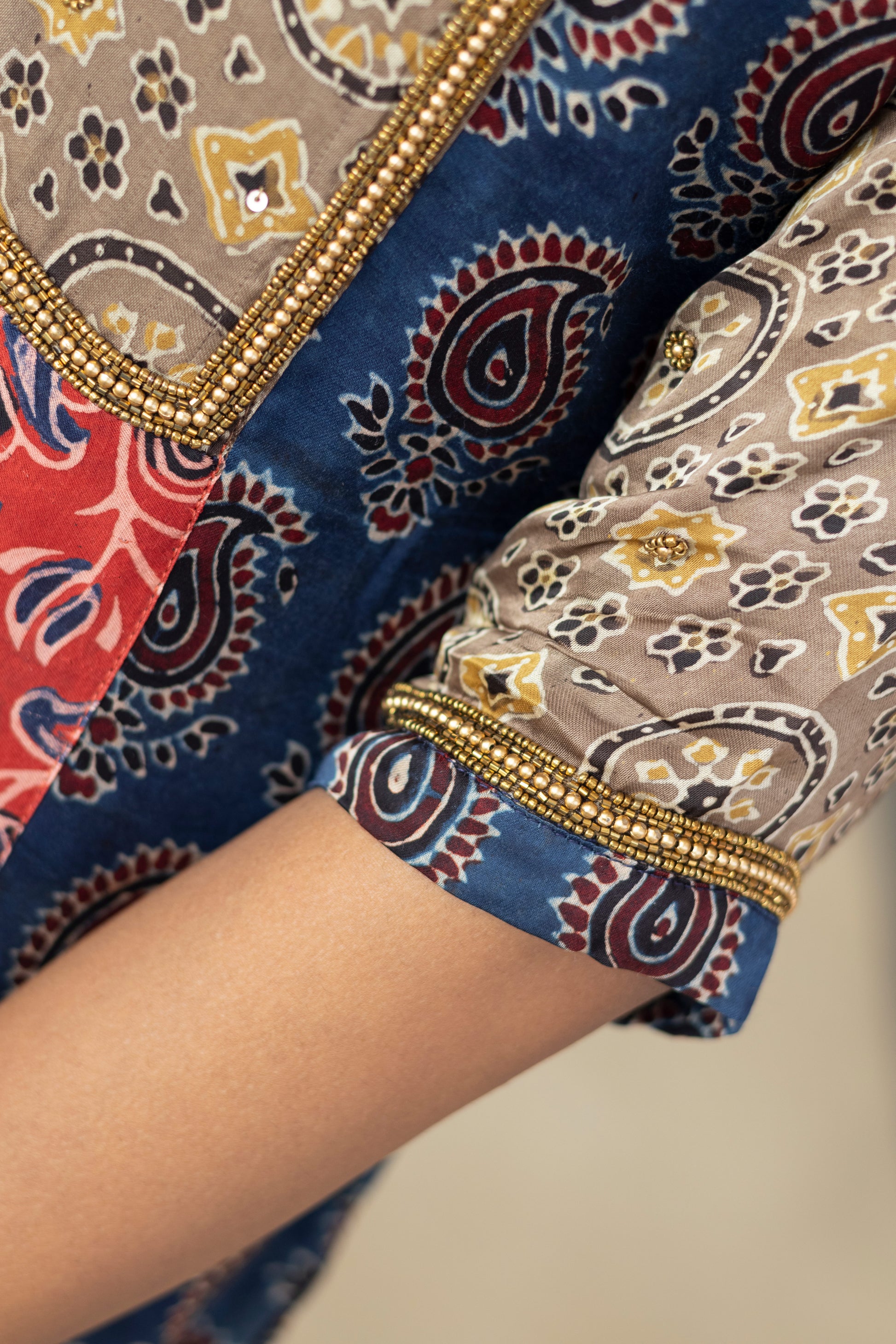 Dark Beige Highlight Yoke with Red&Blue Combination Kurta