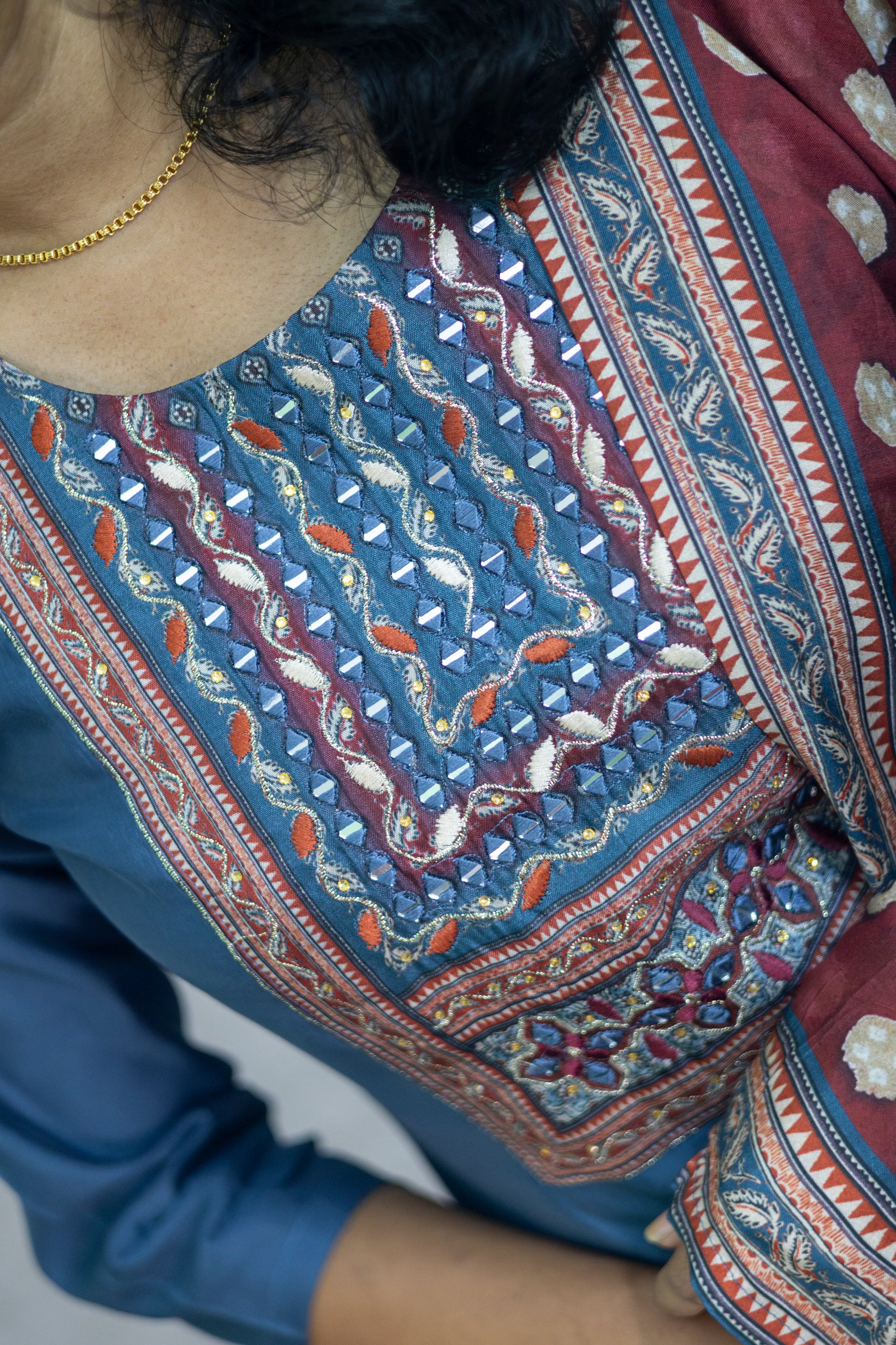 Blue Color Embroidery Yoke with Kurti Bottom Dupatta Set